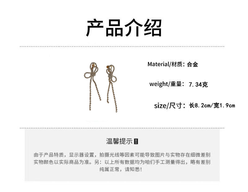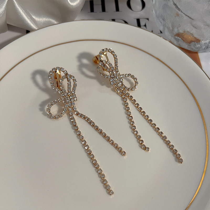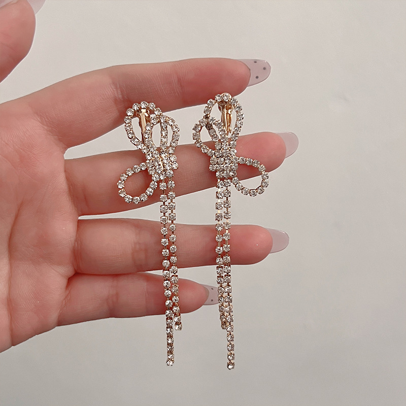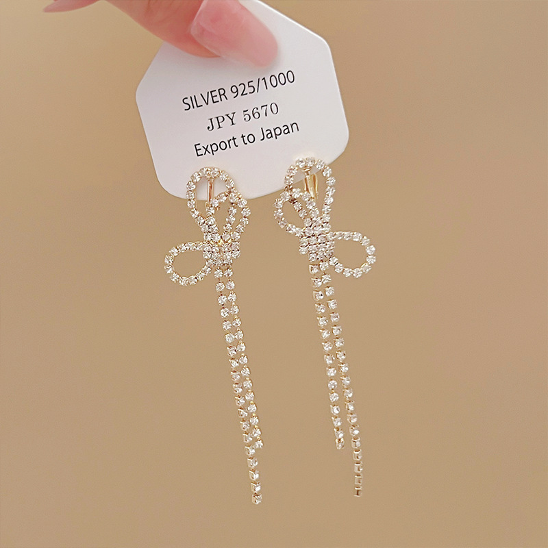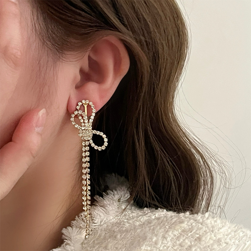 韩国气质蝴蝶结耳环甜美超仙镶钻流苏耳坠小众设计长款百搭耳钉女