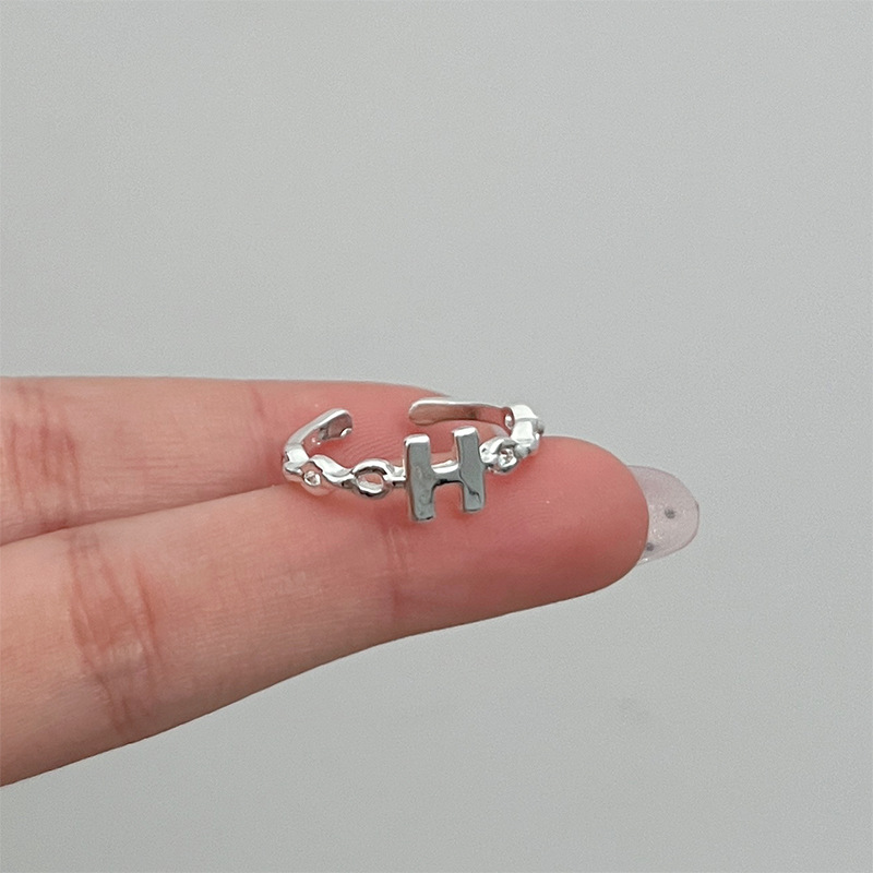 H字母链条戒指女小众设计气质高级感几何食指开口轻奢可调戒指环