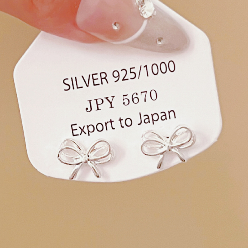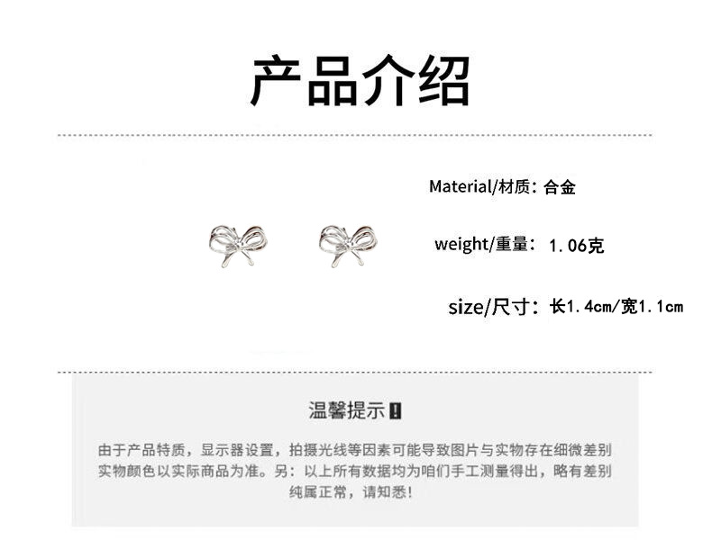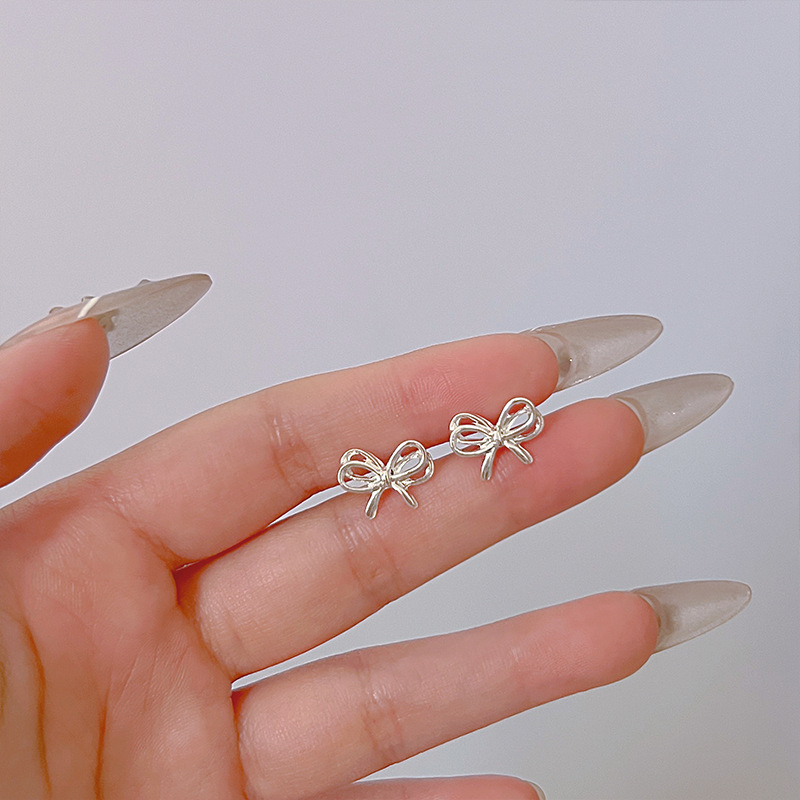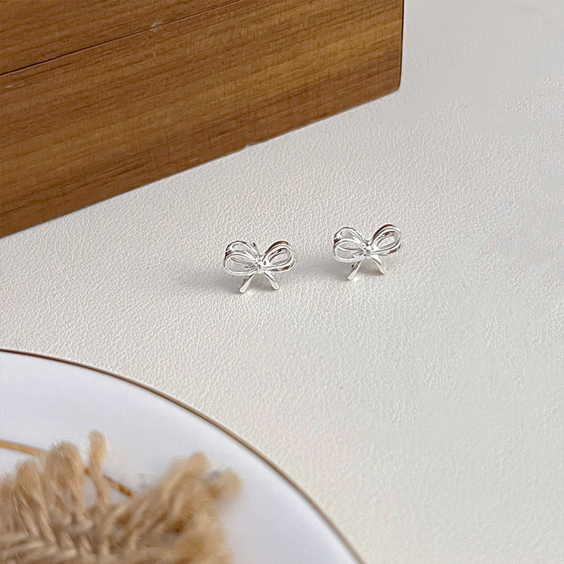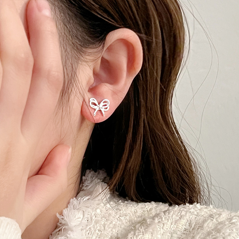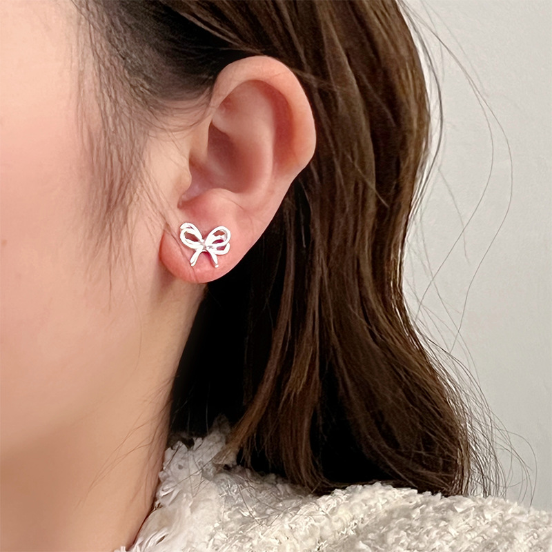 芭蕾风小巧精致蝴蝶结耳钉女甜美可爱个性时尚气质百搭耳环耳饰