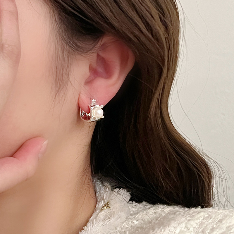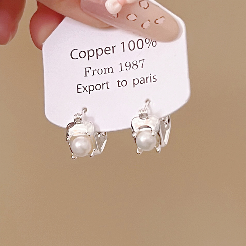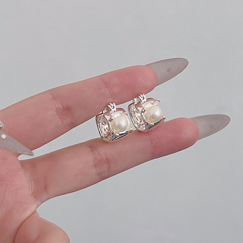 韩国小众设计师款珍珠方圈耳环轻奢镀银气质高级冷性风耳饰女ins