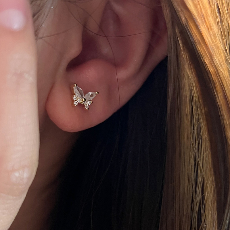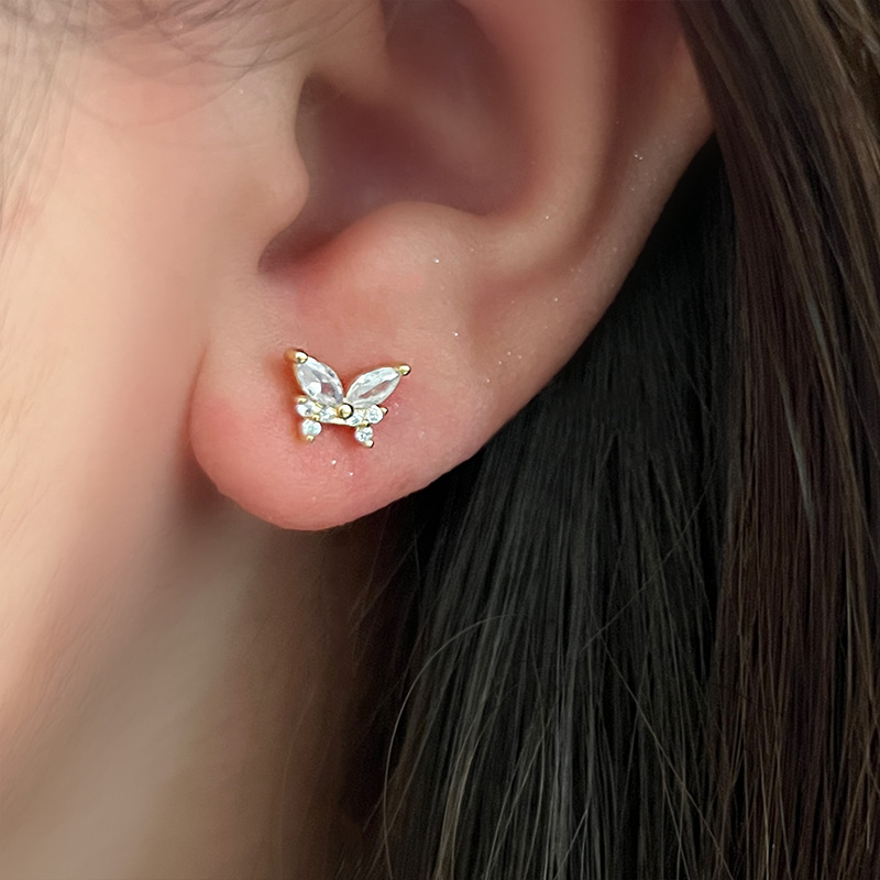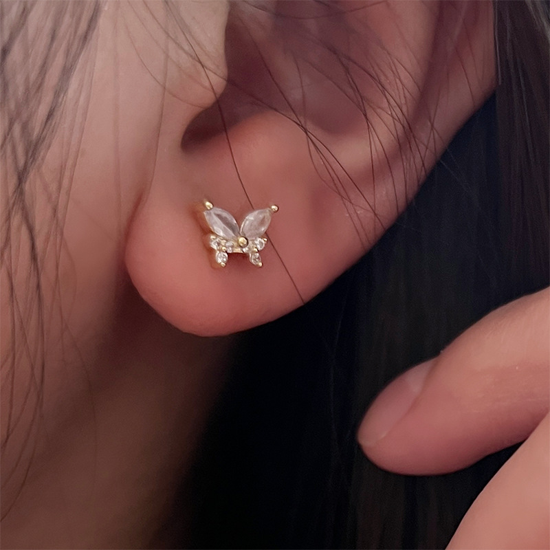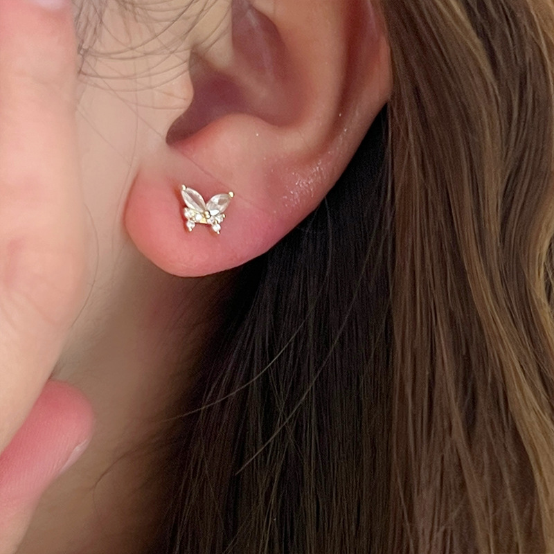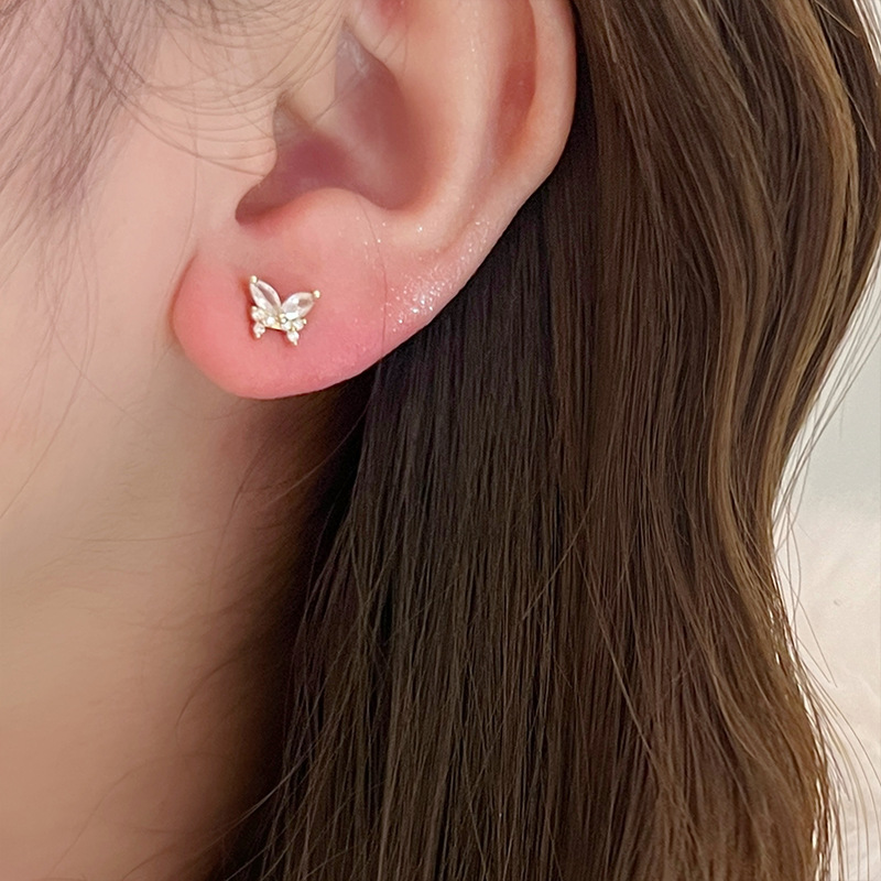 s925纯银蝴蝶耳钉女2024新款爆款小众设计高级感耳环精致甜美耳饰
