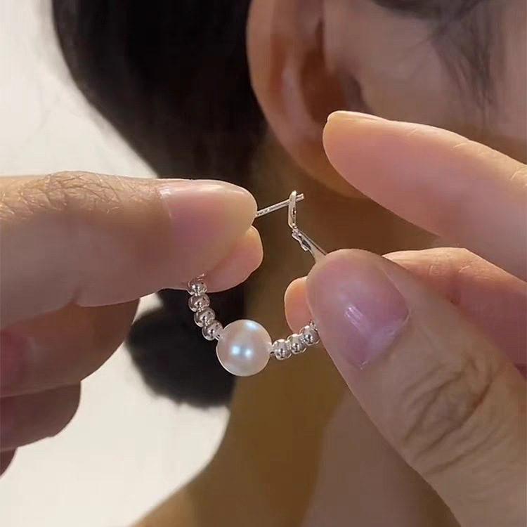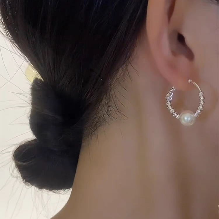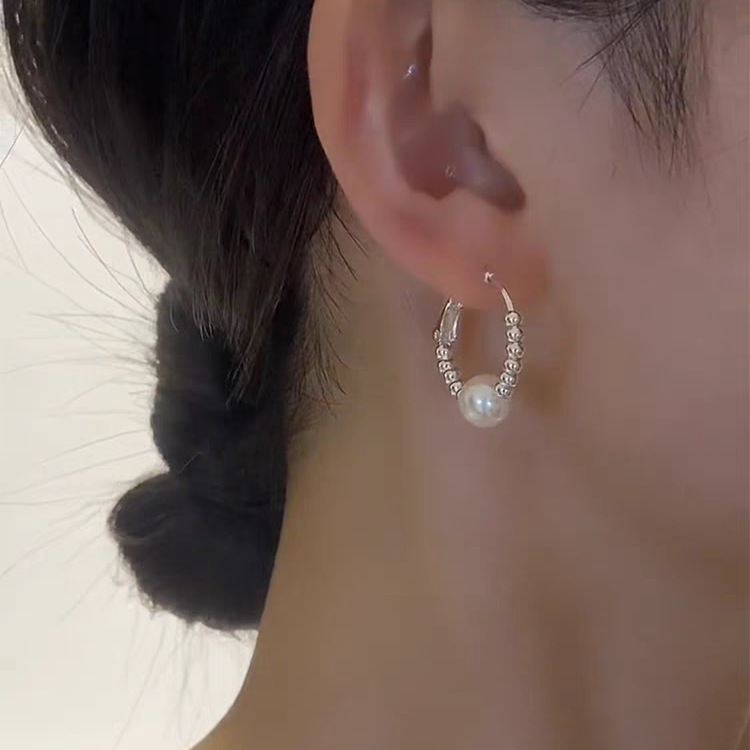 珍珠耳环圈圈耳钉女轻奢高级感纯银针素圈耳饰2024新款爆款耳圈