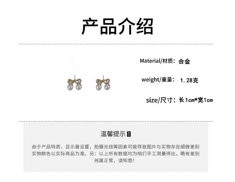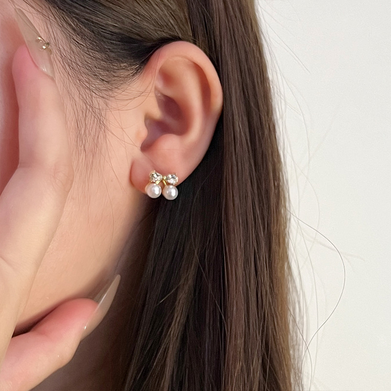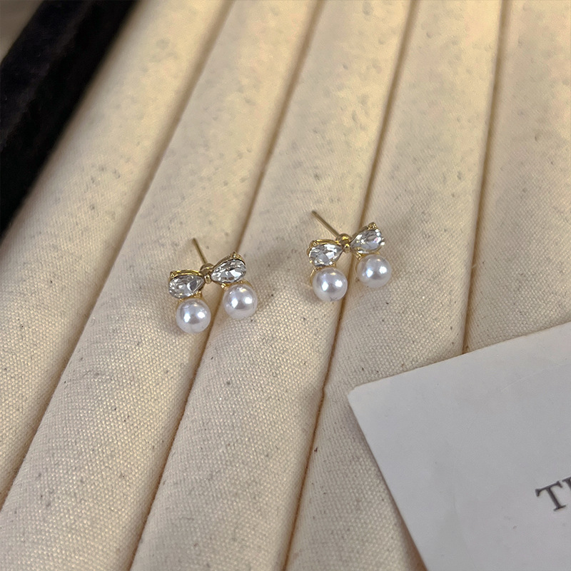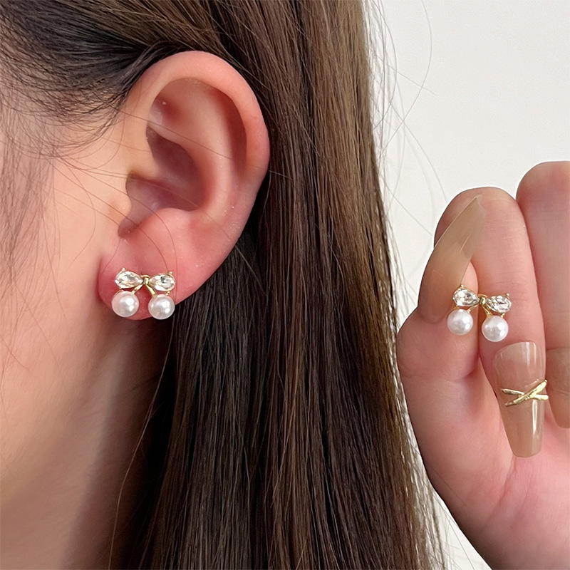 精致锆石蝴蝶结耳环女小巧高级设计珍珠耳饰气质网红个性时尚耳钉