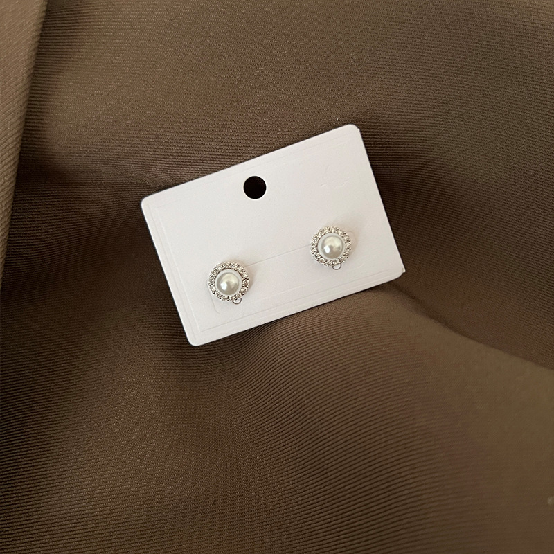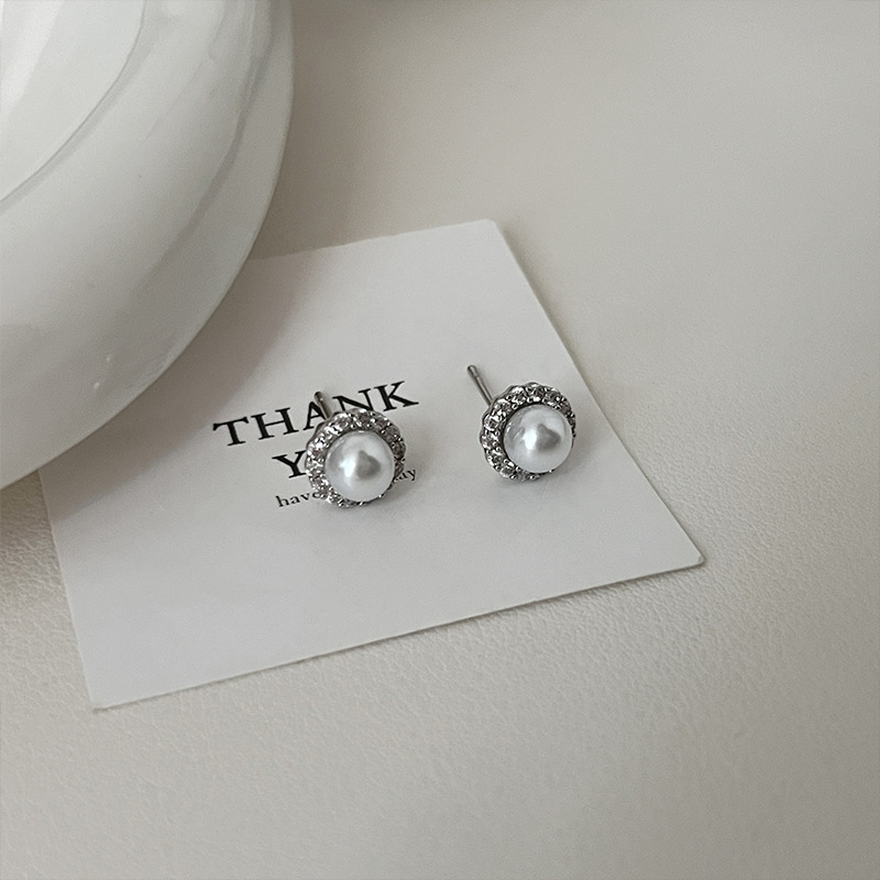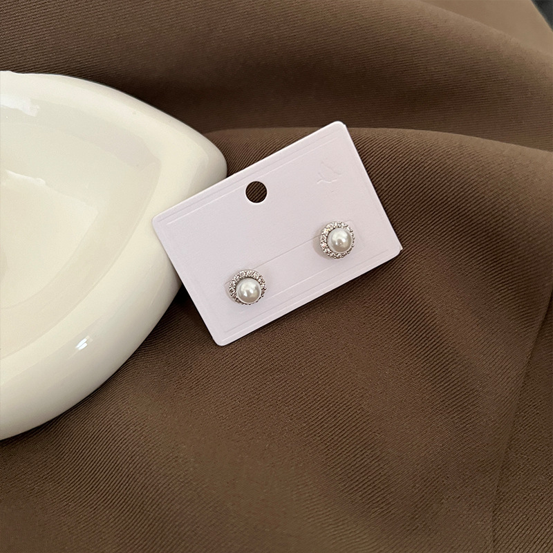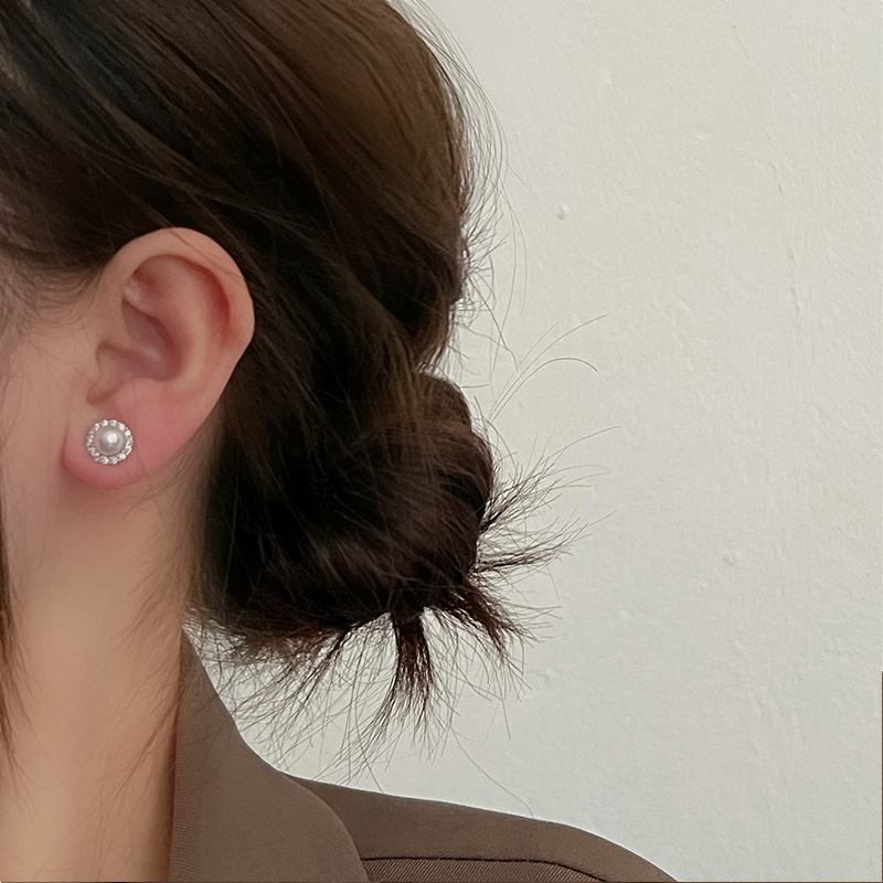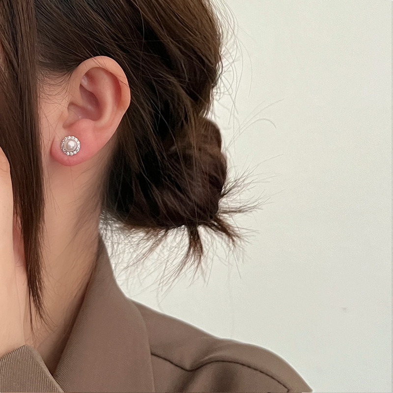 925银针几何圆形锆石珍珠耳钉法式名媛气质简约小众高级设计耳环