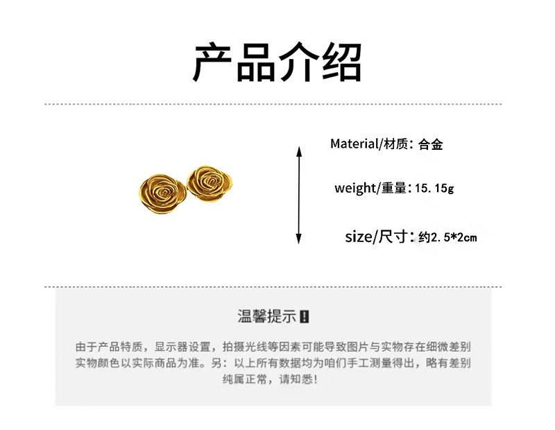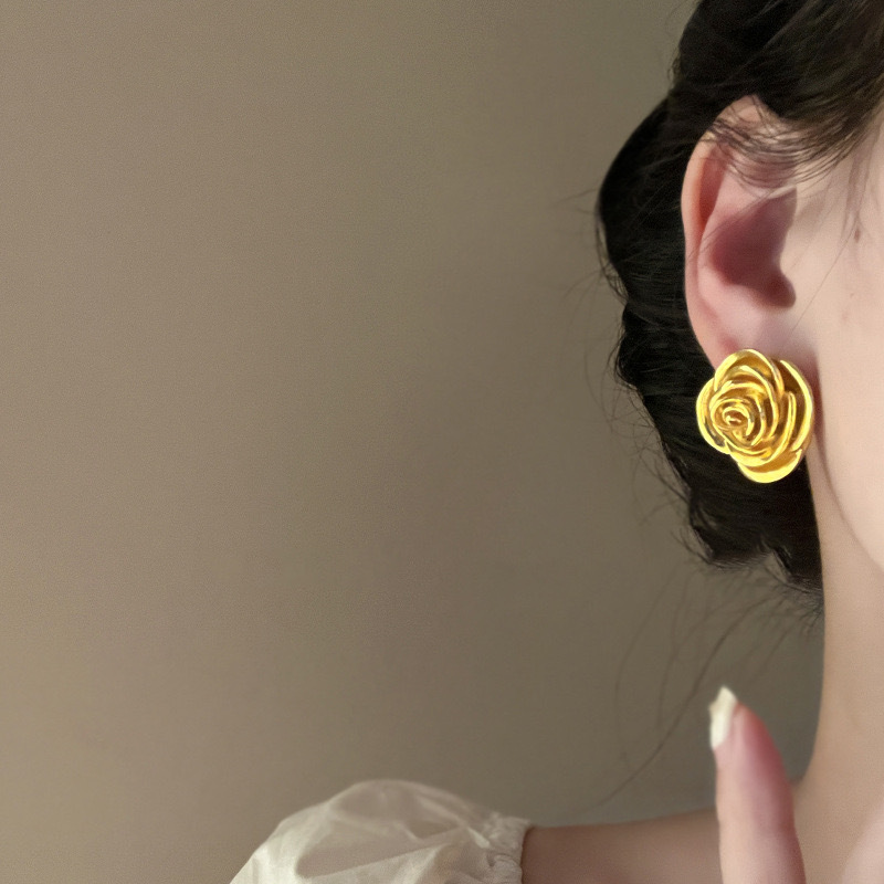 法式复古金属玫瑰立体耳钉女气质百搭花朵耳环小众高级感简约耳饰
