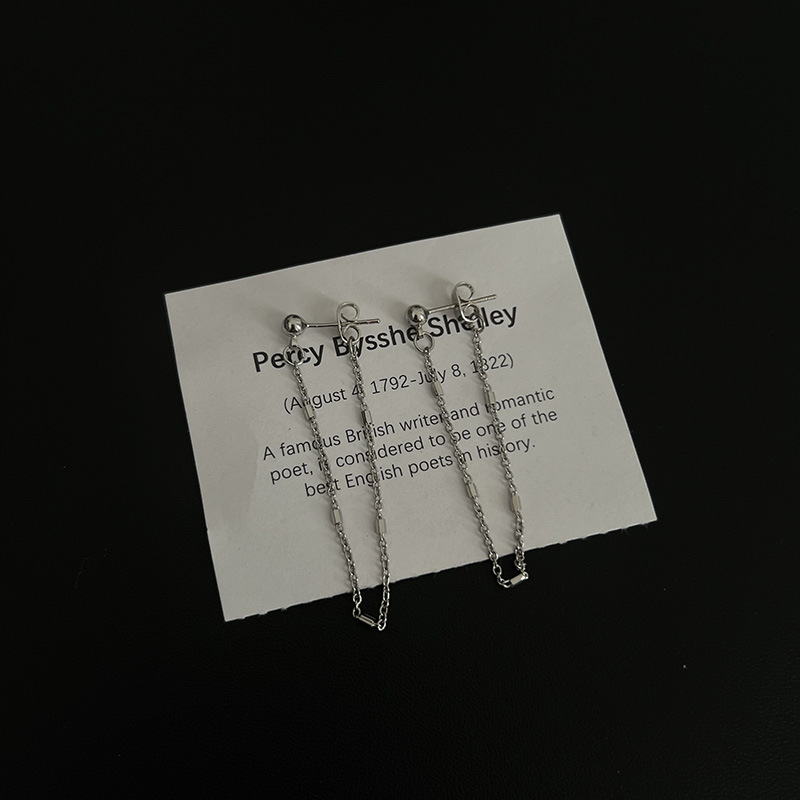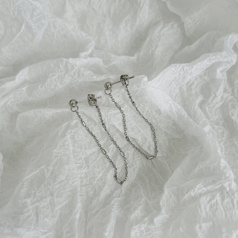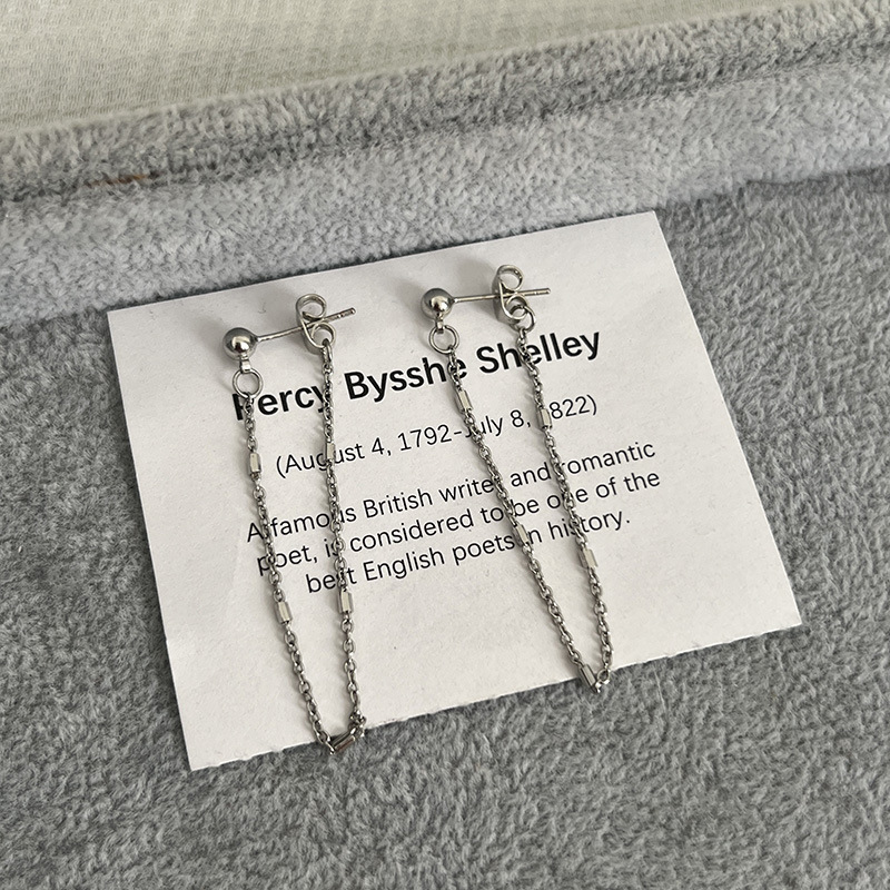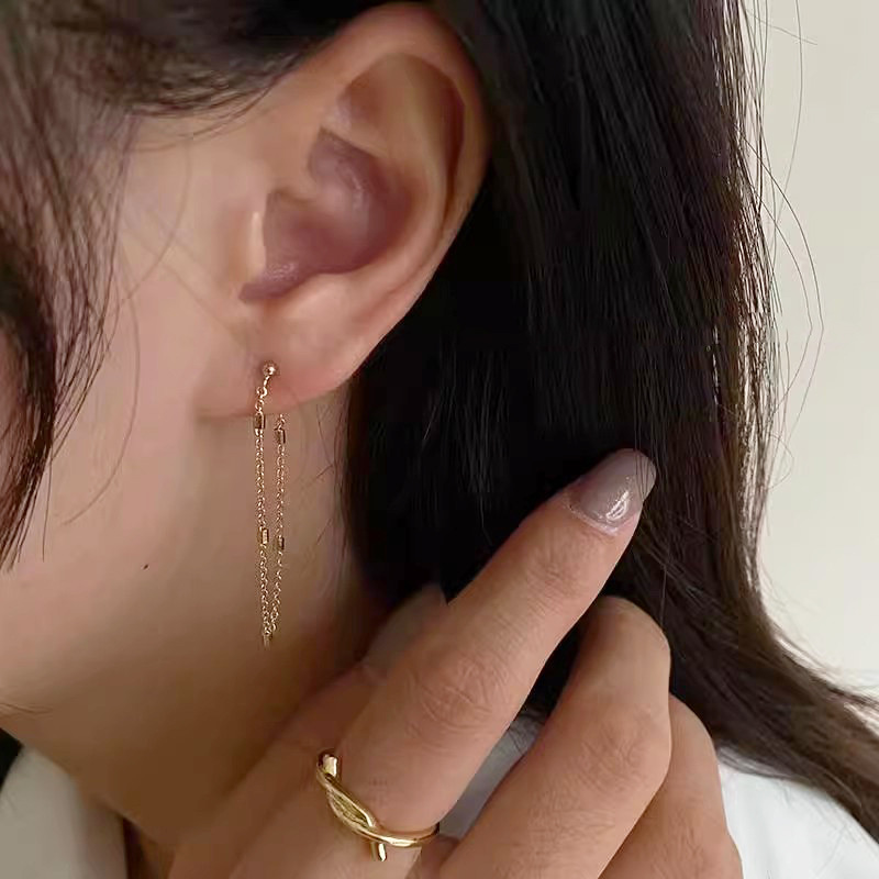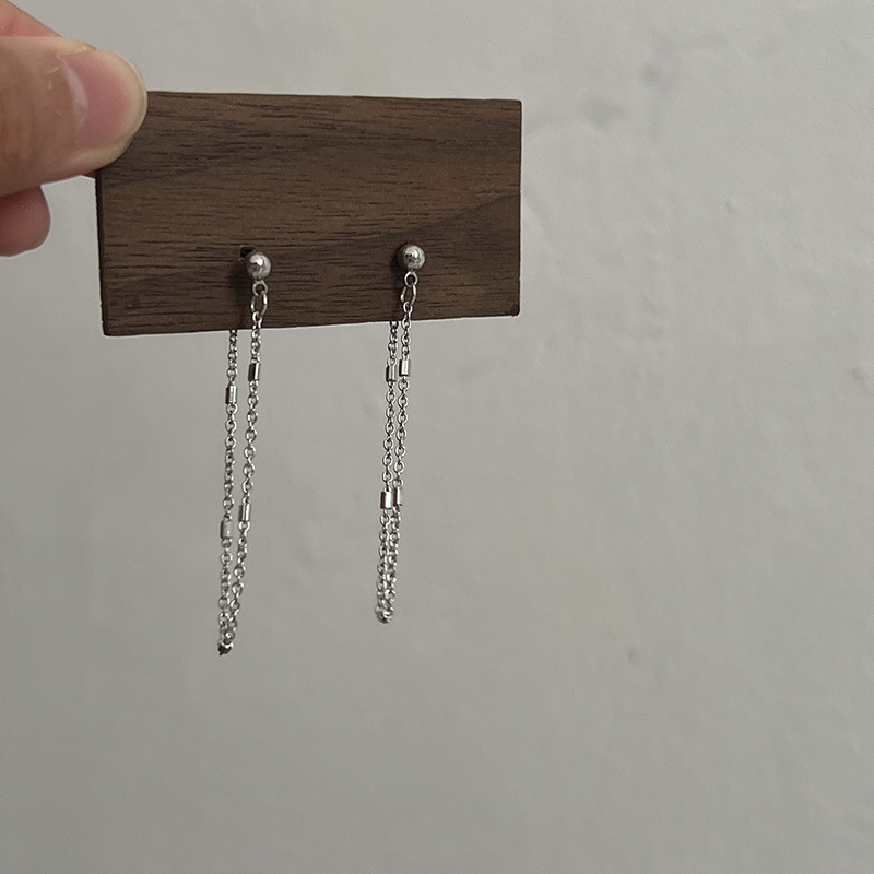 S925纯银针耳钉韩国韩版网红显脸瘦气质链条豆豆闪钻流苏小众耳环