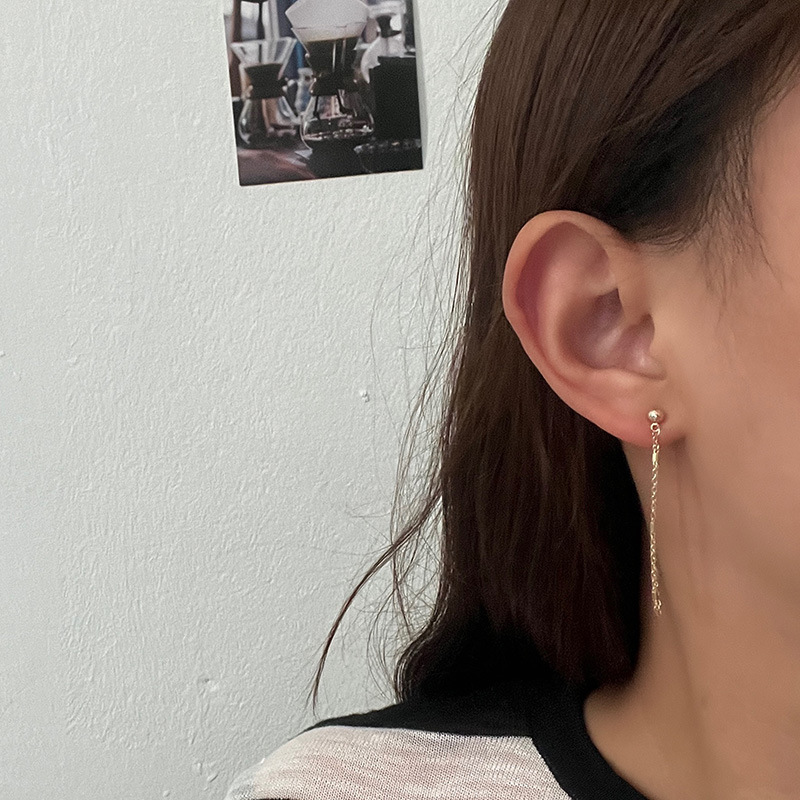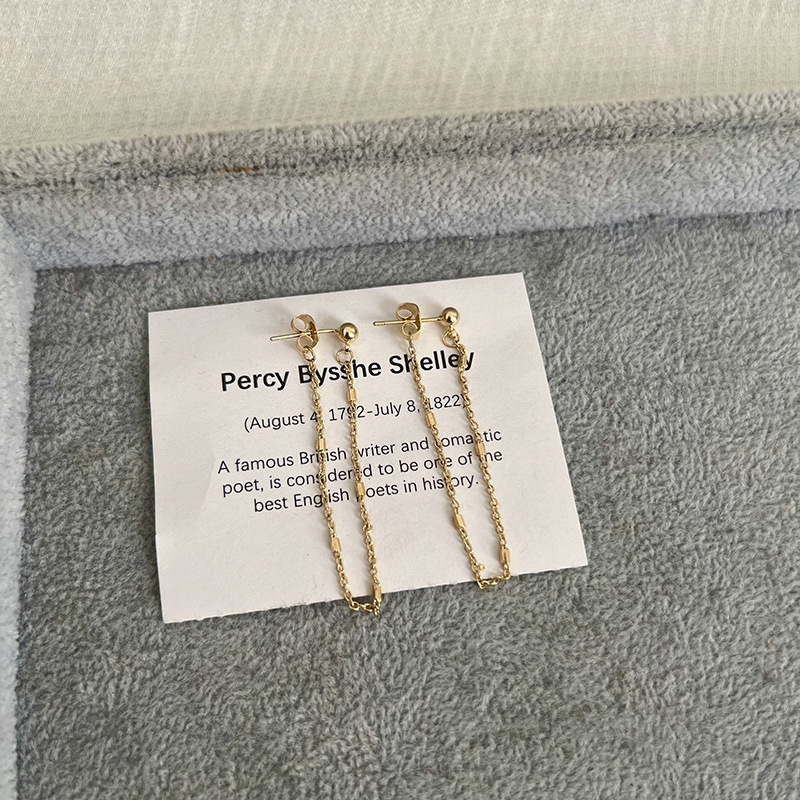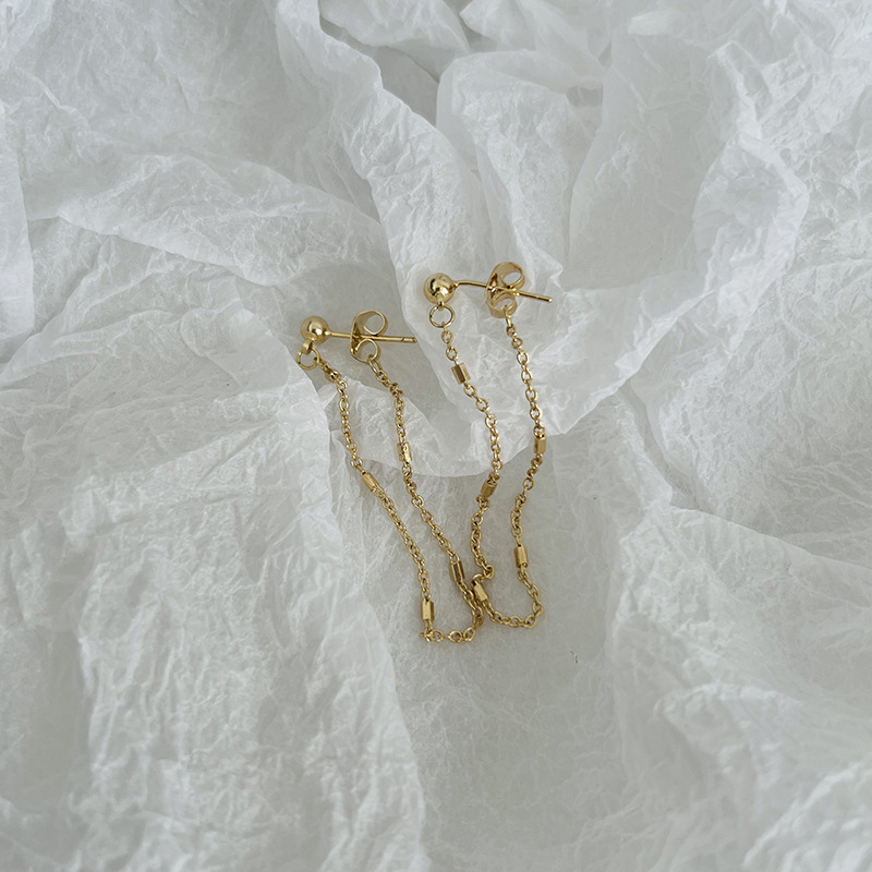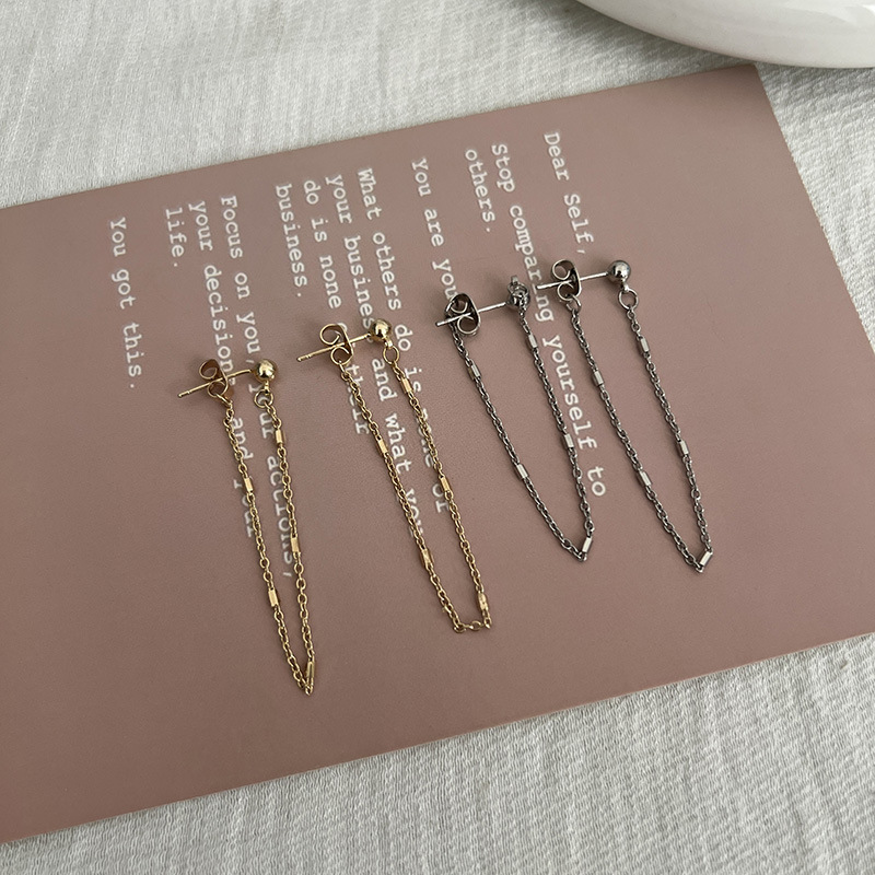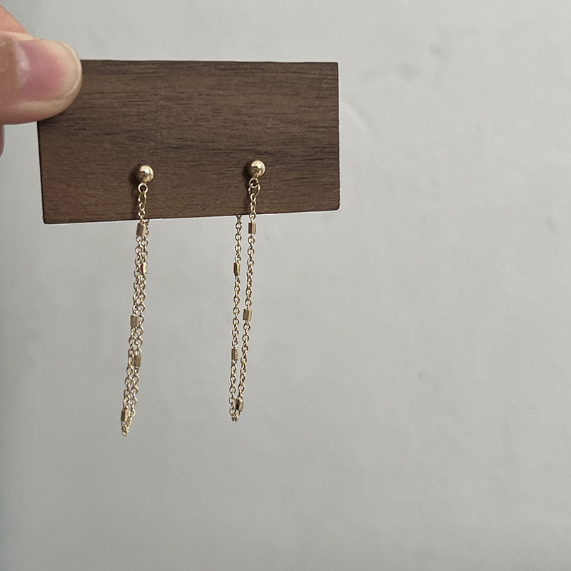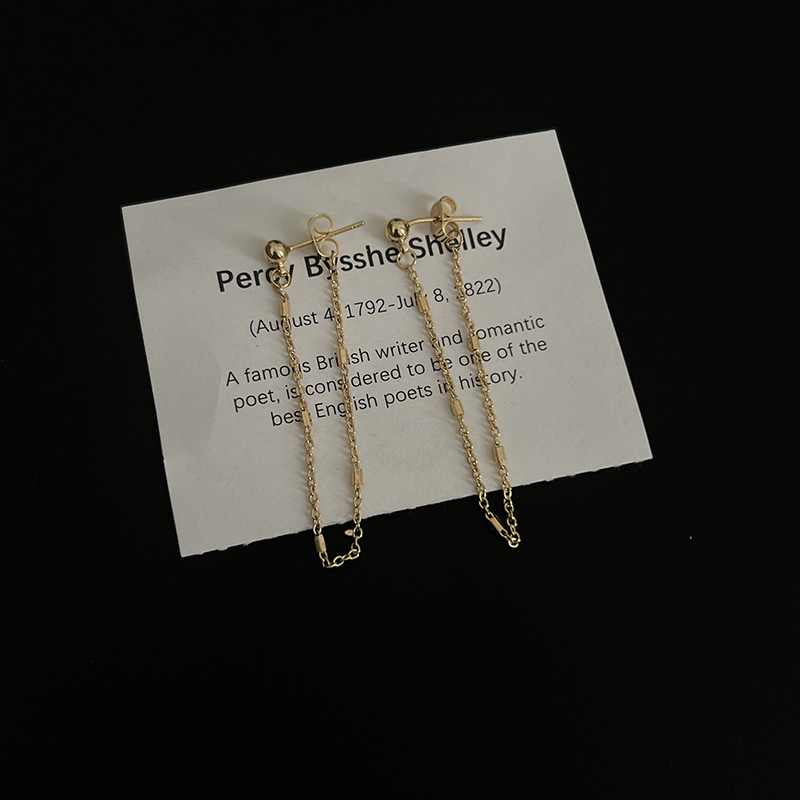 S925纯银针耳钉韩国韩版网红显脸瘦气质链条豆豆闪钻流苏小众耳环