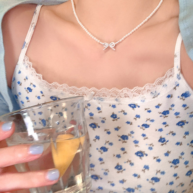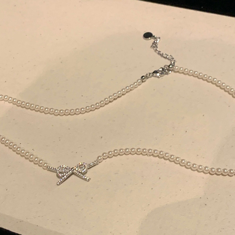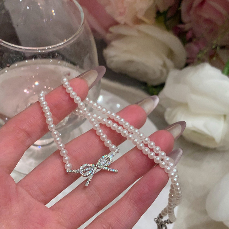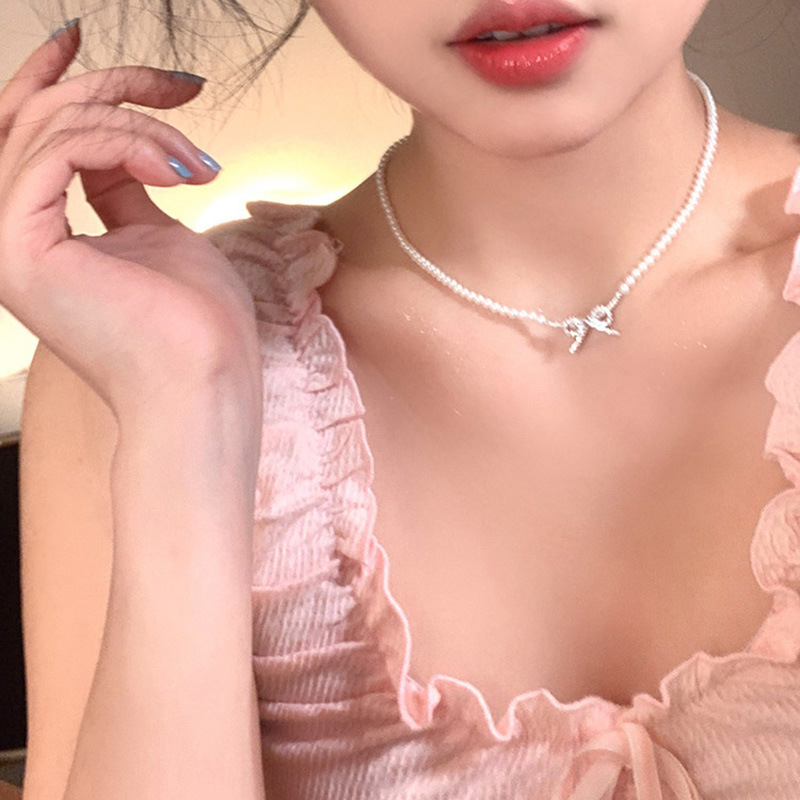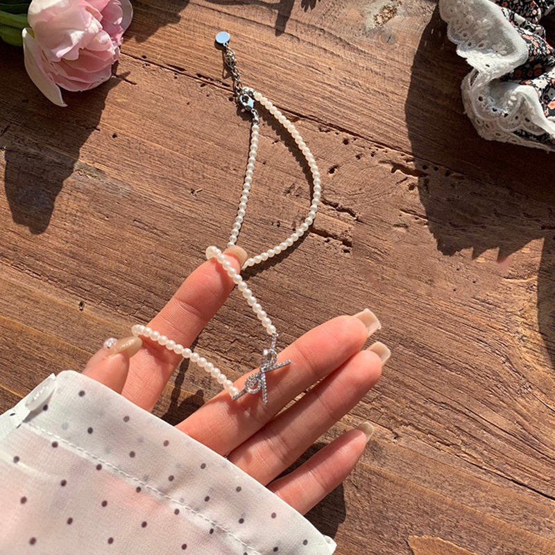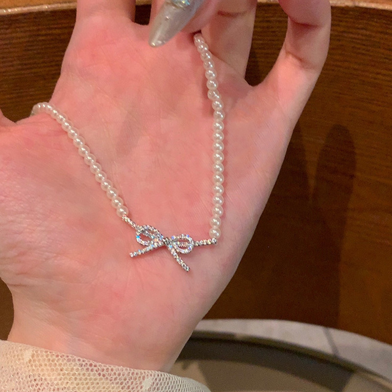 蝴蝶结珍珠吊坠项链女choker气质高级感脖颈链法式时尚百搭锁骨链