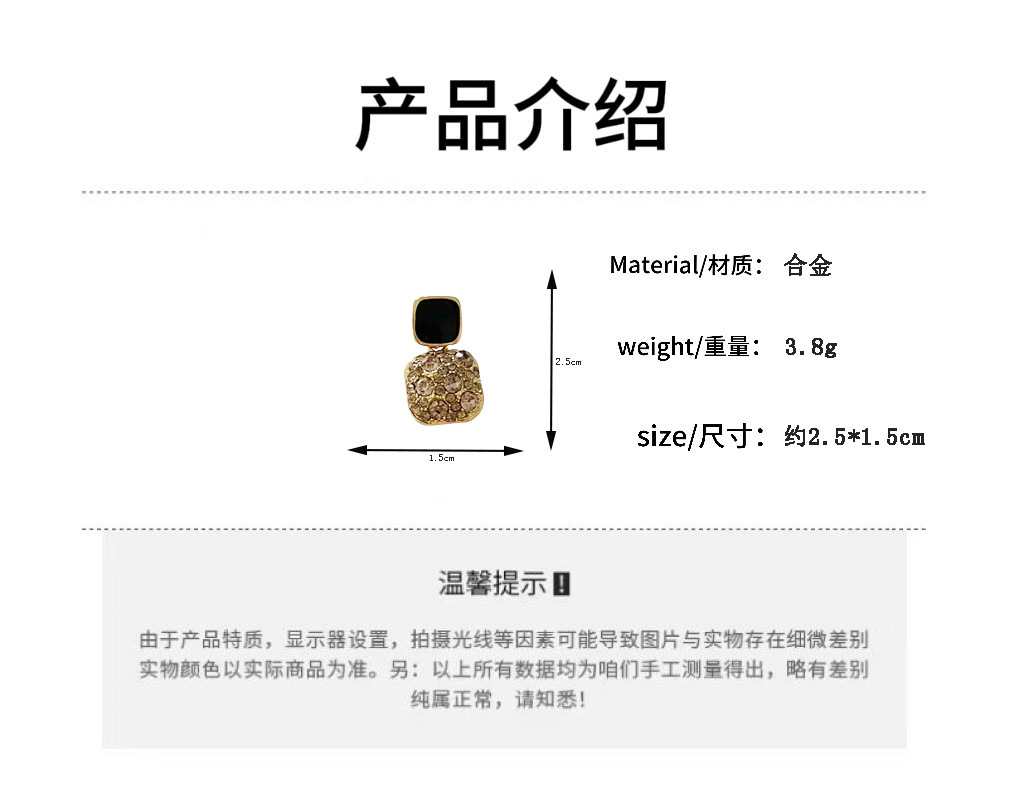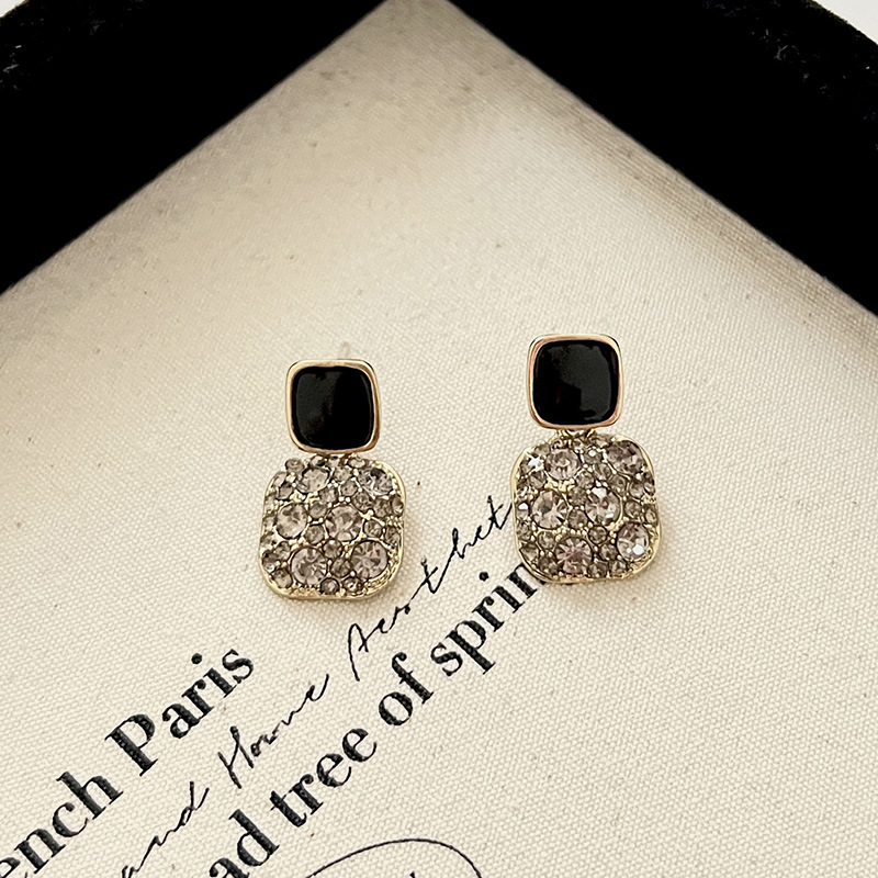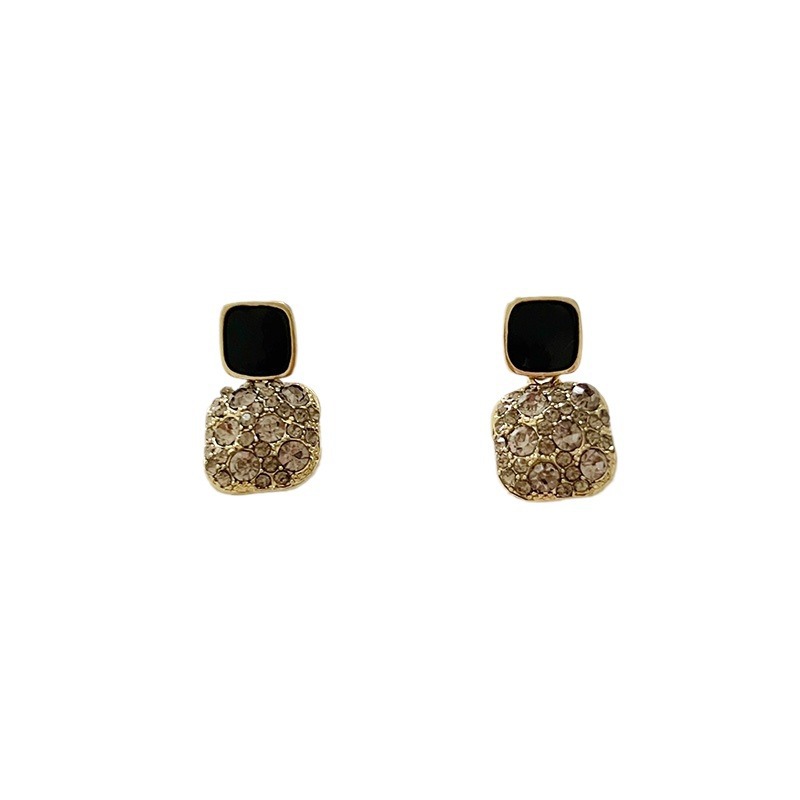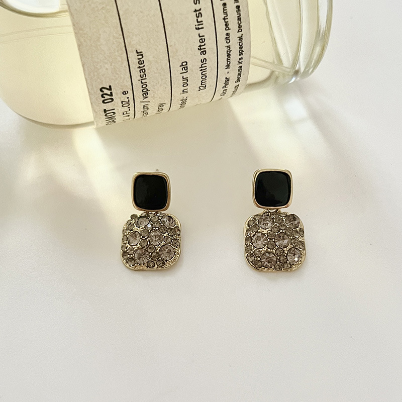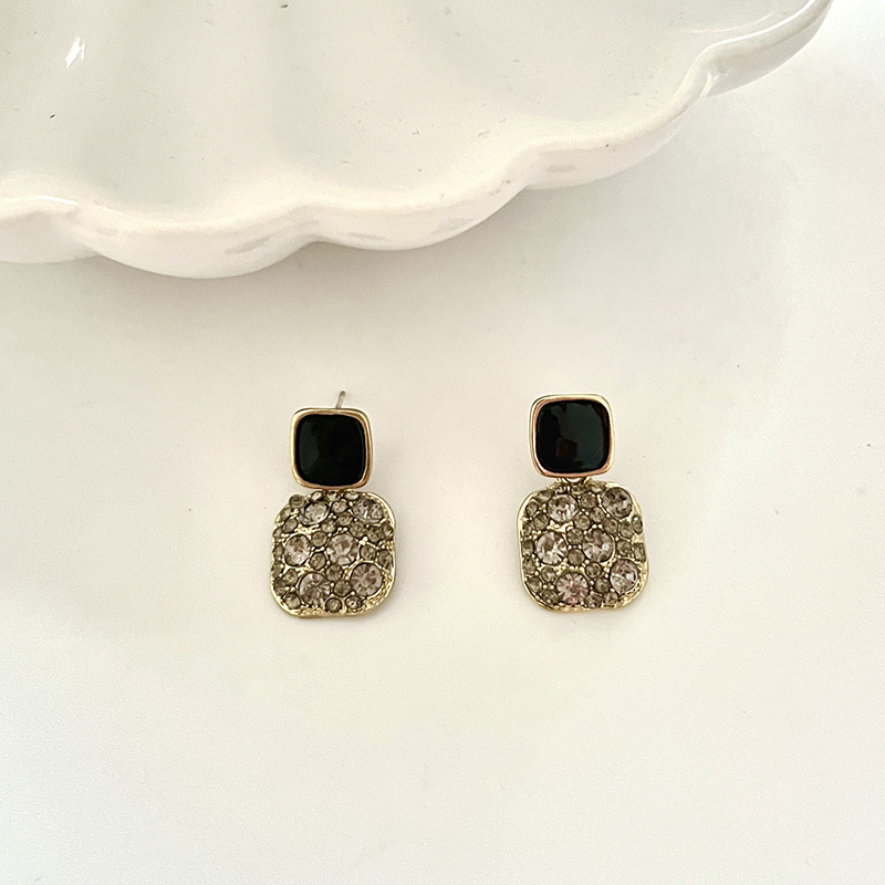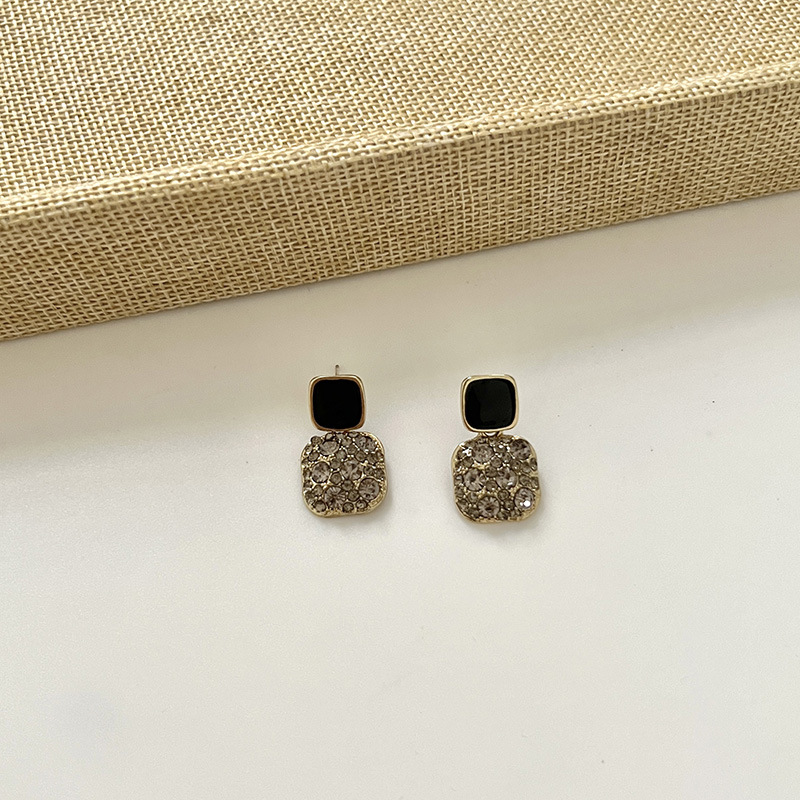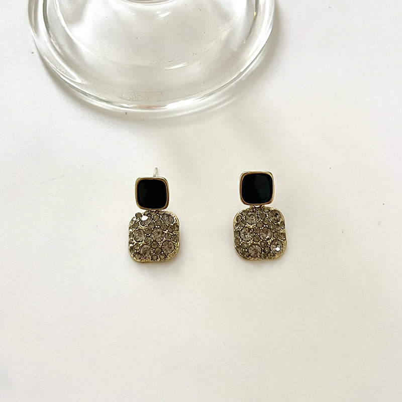 镶钻方形几何耳环港风复古经典时尚气质耳坠s925银针2024年新款潮