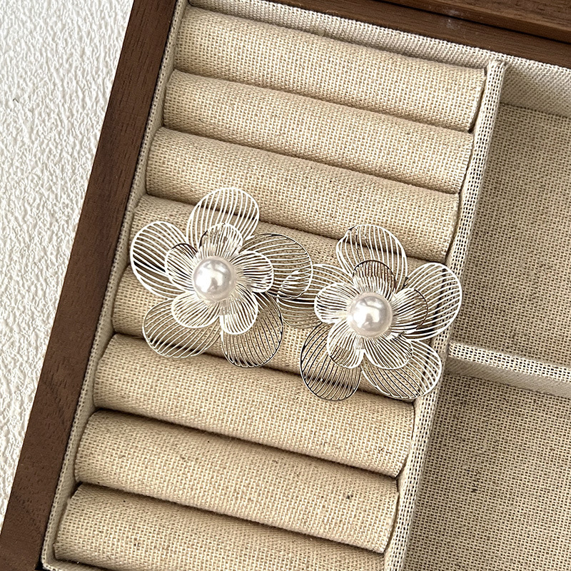 春夏新款饰品山茶花耳钉女S925银针轻奢小众耳饰高级感个性耳环