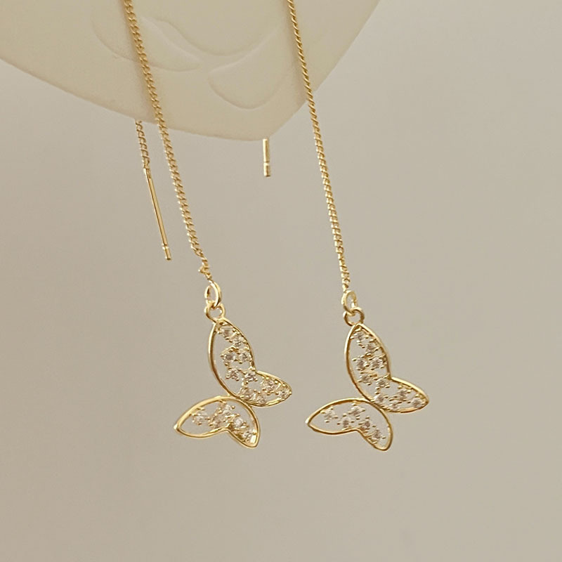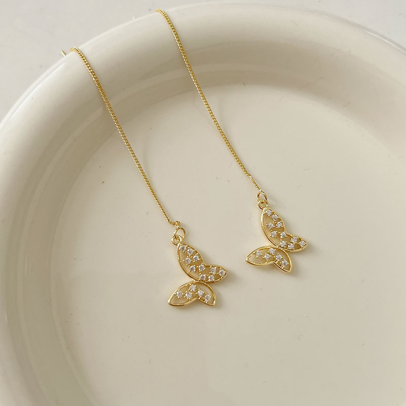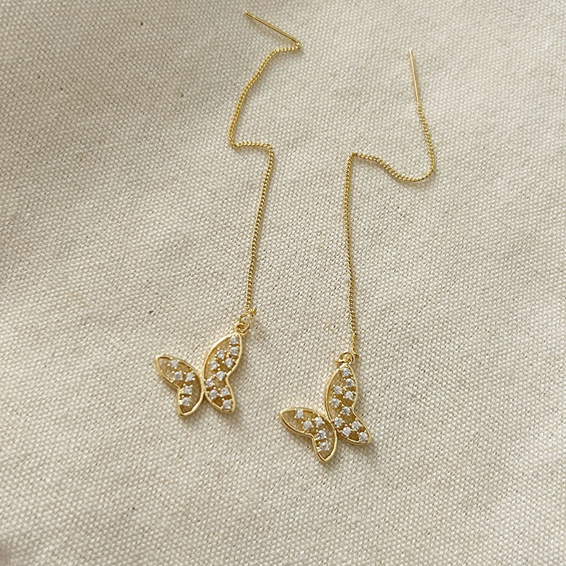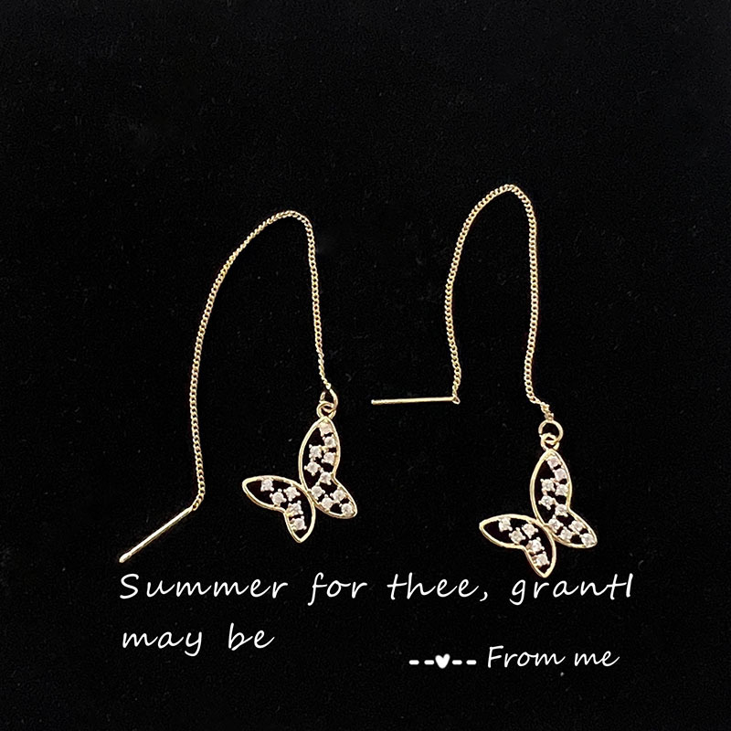 蝴蝶长款耳环2022年新款潮小众设计感高级轻奢纯银耳饰女气质耳线