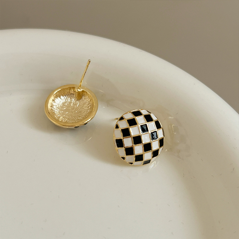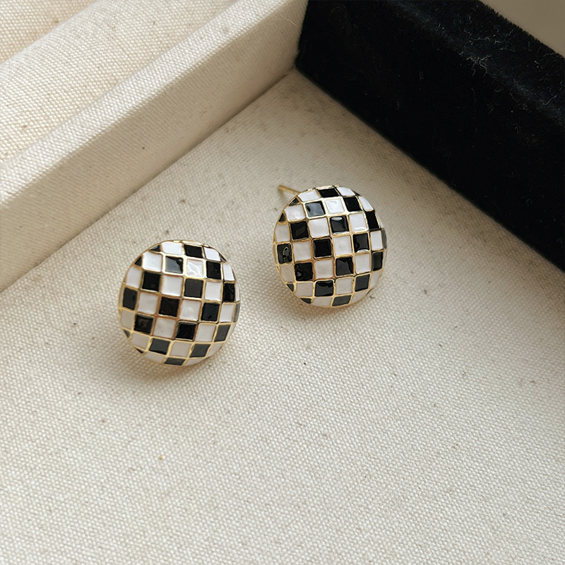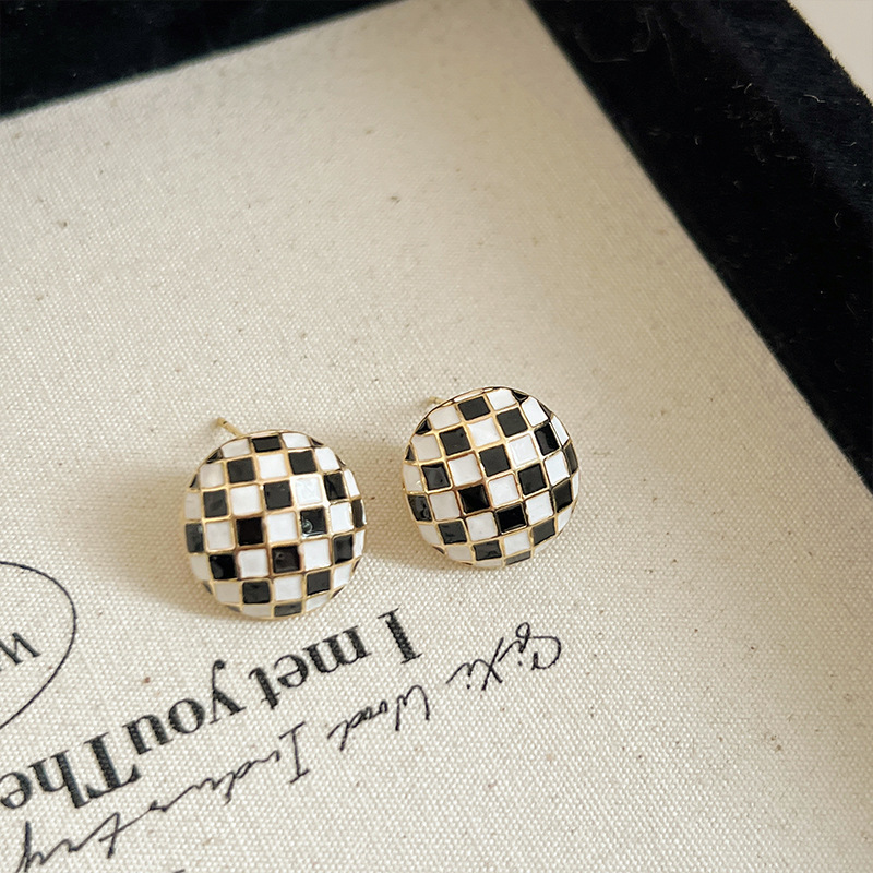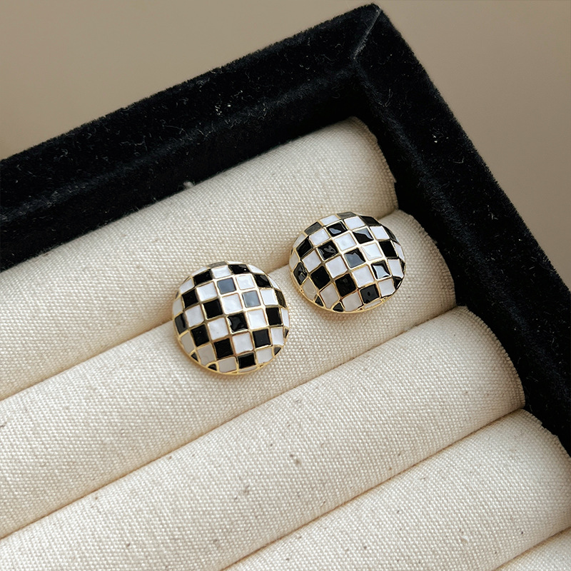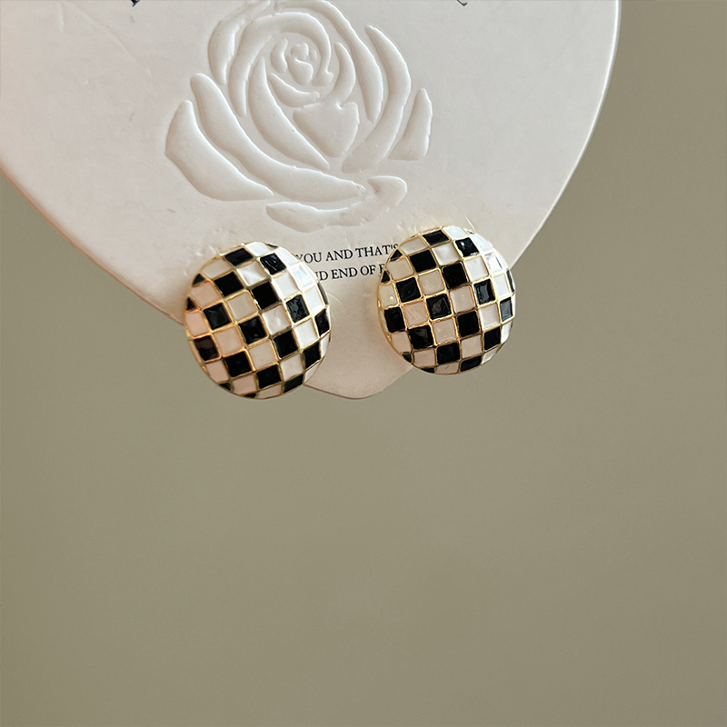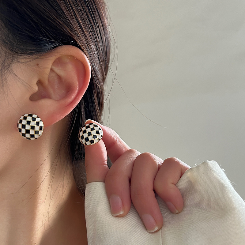 黑白棋盘格耳钉耳环2024新款时尚洋气耳钉格子秋冬耳饰品高级感潮