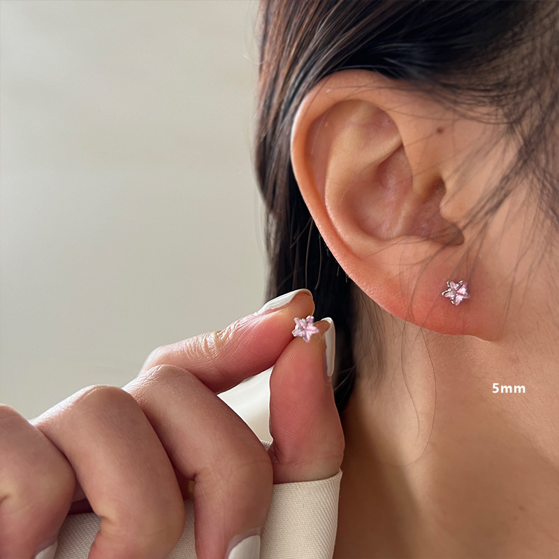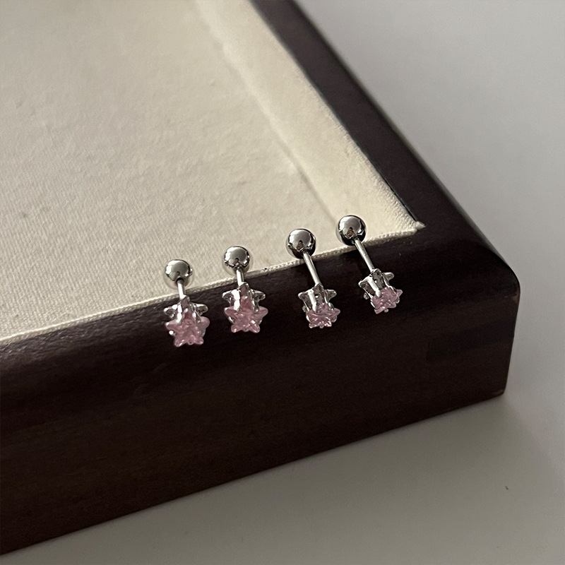 粉色星星锆石耳钉耳骨钉小巧简约百搭气质高级感耳环耳饰新款超闪
