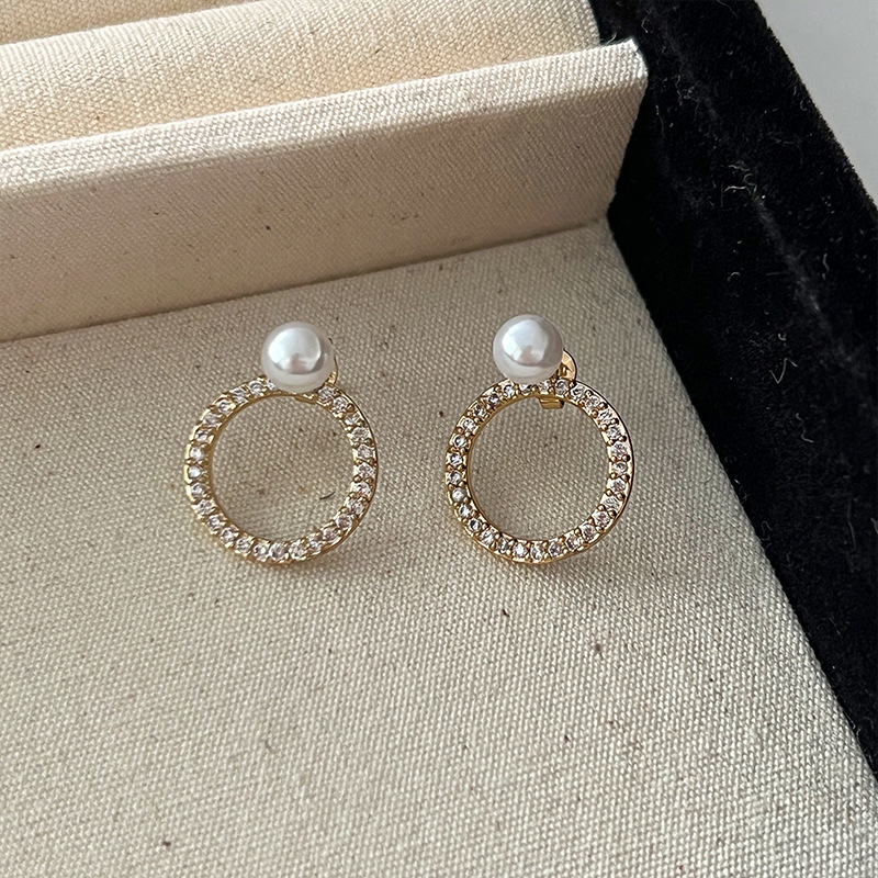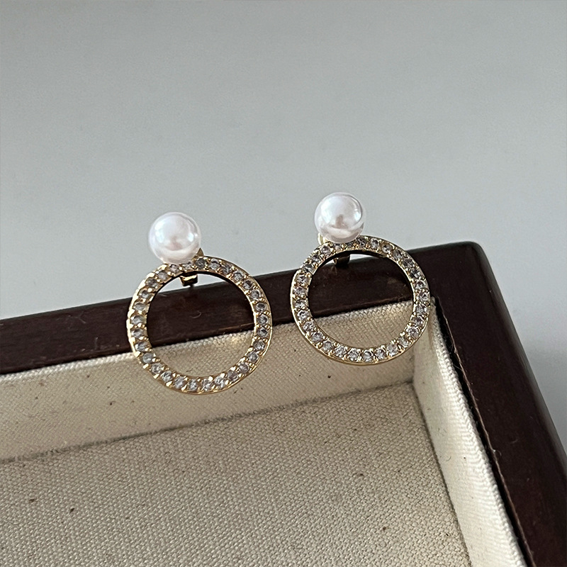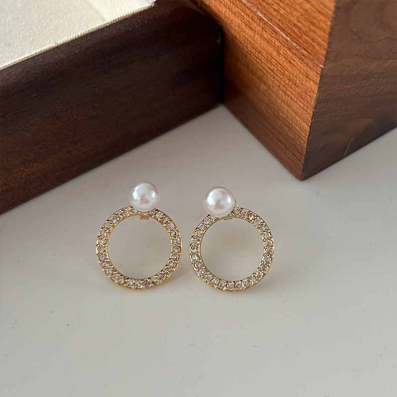 复古大气质镶钻珍珠耳饰圆圈耳环2023年新款潮耳坠女高级感ins风