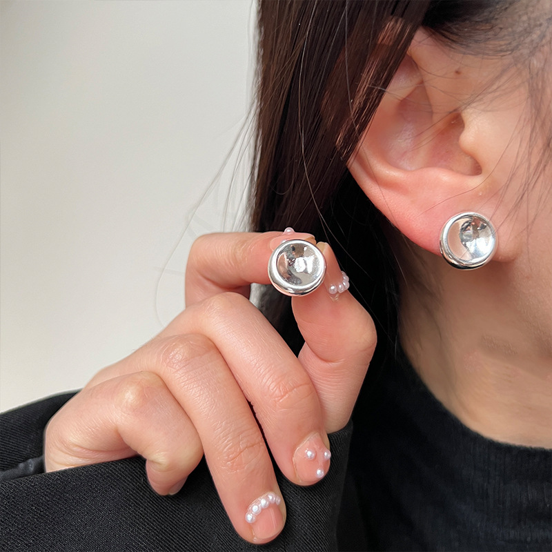 925银针小众设计几何圆形耳钉ins甜美简约气质百搭高级感耳环耳饰
