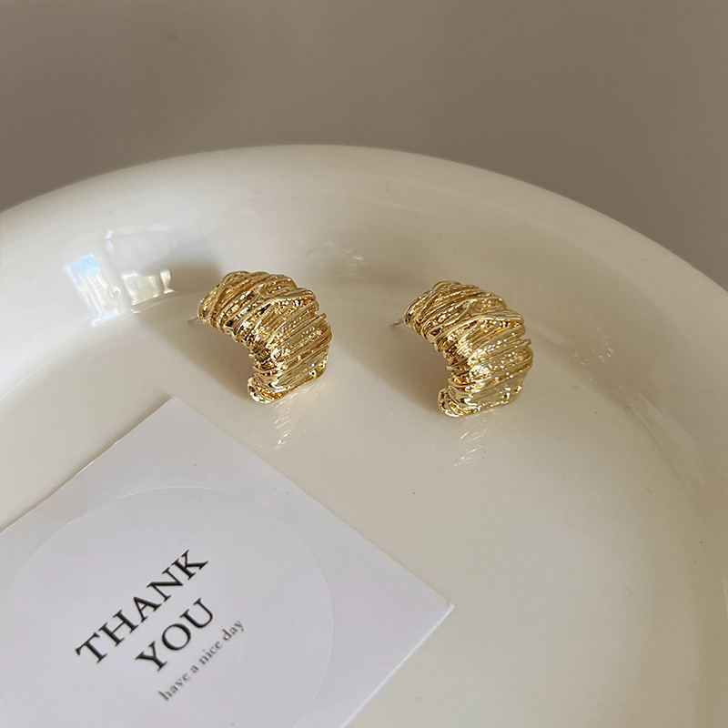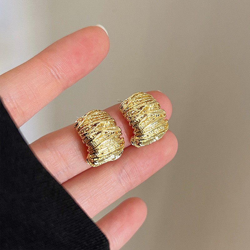 不规则拉丝法式金色耳钉女独特耳环小众设计高级感2023新款爆款