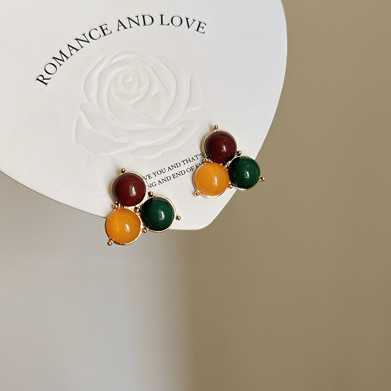 S925银针韩国东大门款秋季百搭彩色耳钉仙气撞色时尚款耳钉耳饰