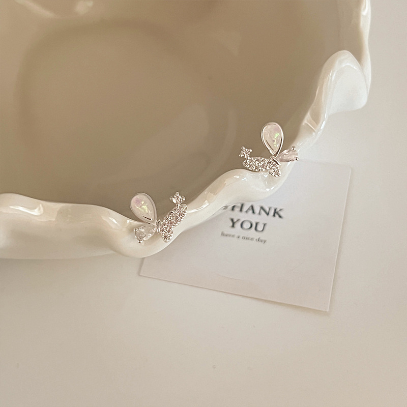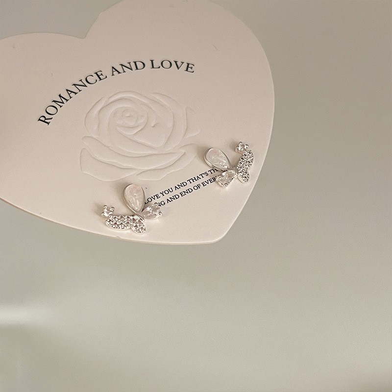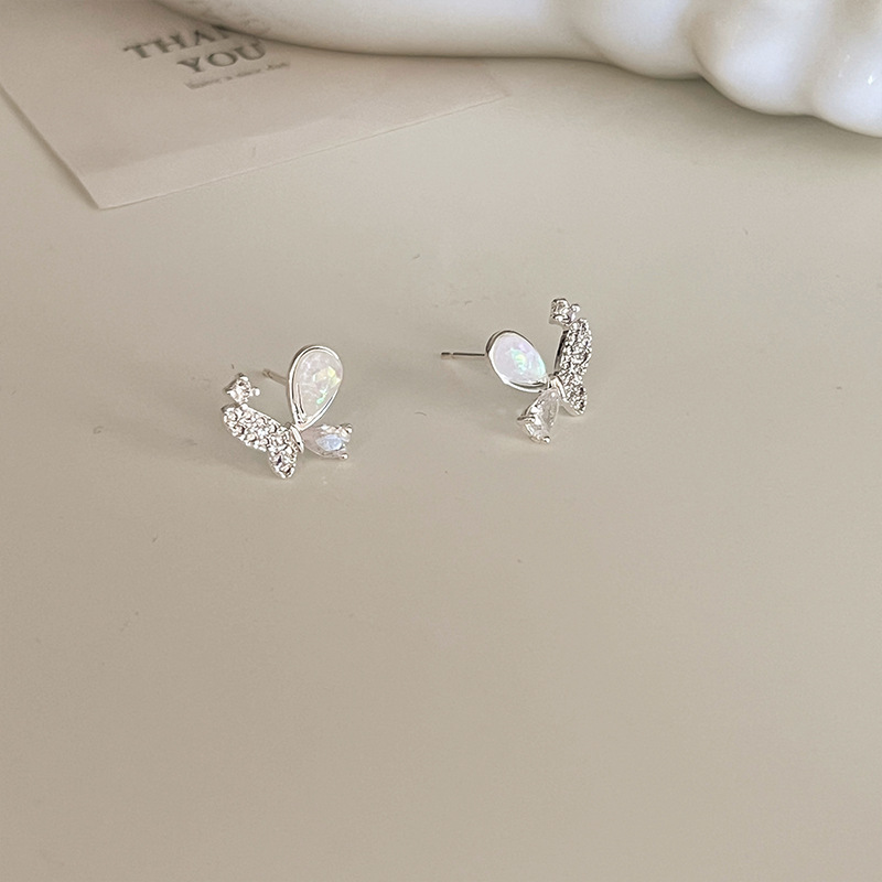 蝴蝶耳钉小巧精致水晶耳环日常百搭适合夏天的耳饰女小众设计简约