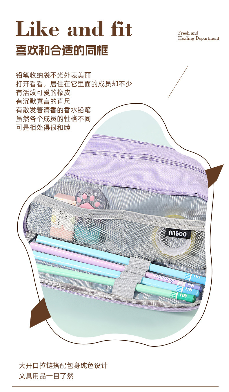 双层双开窗笔袋纯色简约多功能大容量收纳袋小学生耐脏文具收纳包