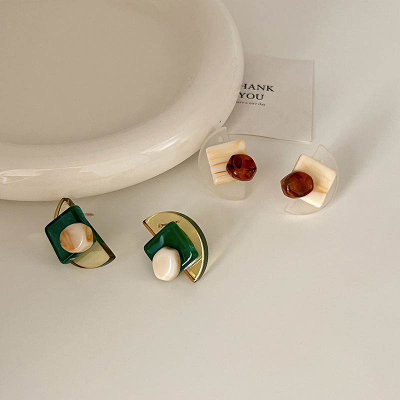 树脂耳钉小众设计感耳环2023年新款潮韩国气质网红简约冷淡风耳饰
