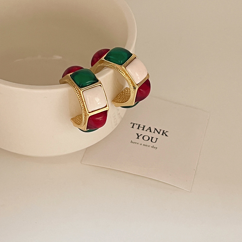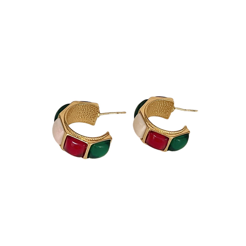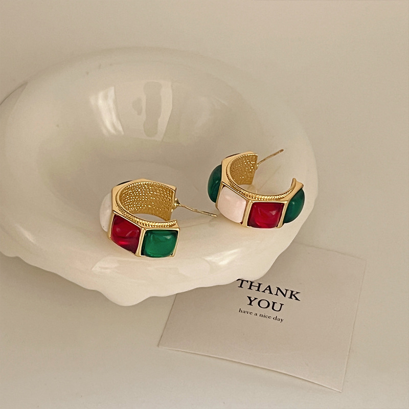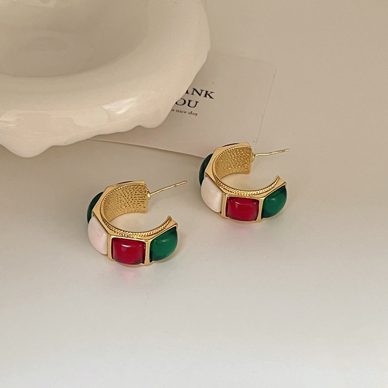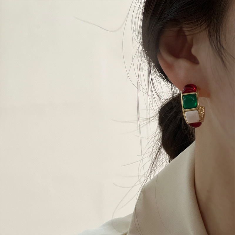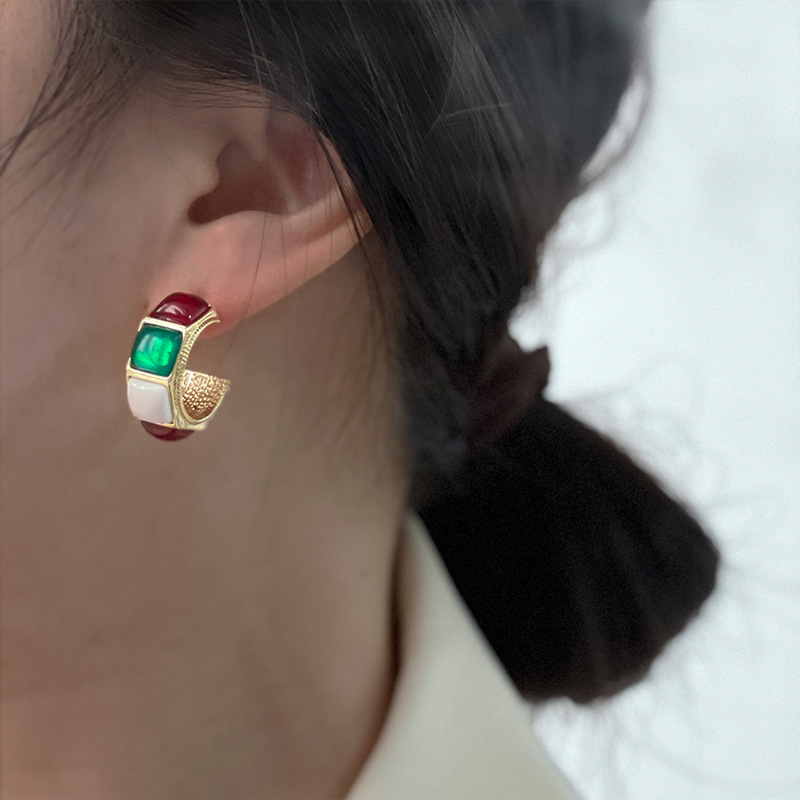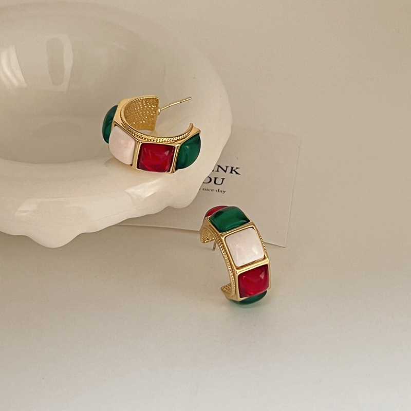 法式复古宫廷风彩色琉璃耳环2023新款中古款高级气质耳钉耳饰