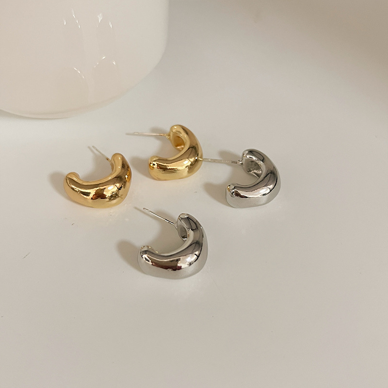银针金属冷淡风C形耳环韩国时尚气质耳钉简约百搭网红耳饰网红女