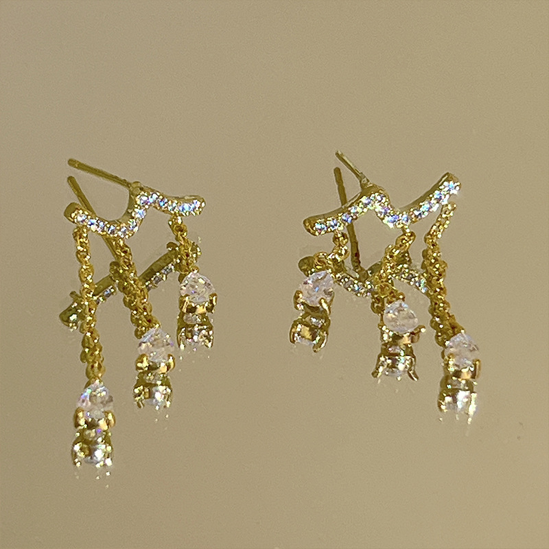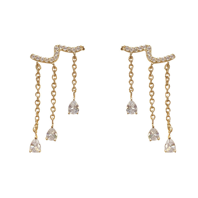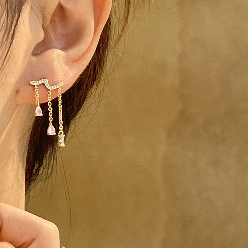 满钻长款流苏波浪耳钉气质小众高级感新款水滴耳钉耳饰女简约百搭