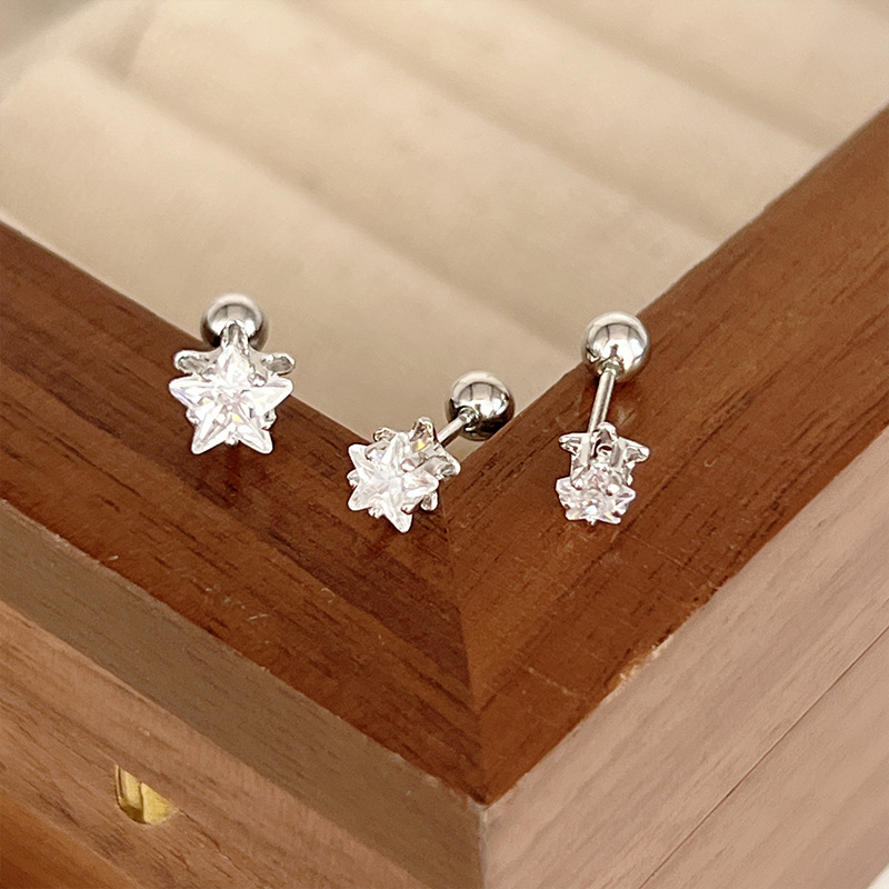 2023年新款潮超闪耳钉女螺丝拧扣高级感闪亮星星耳骨钉