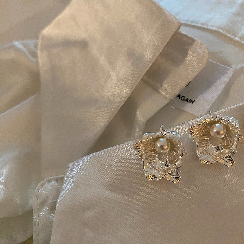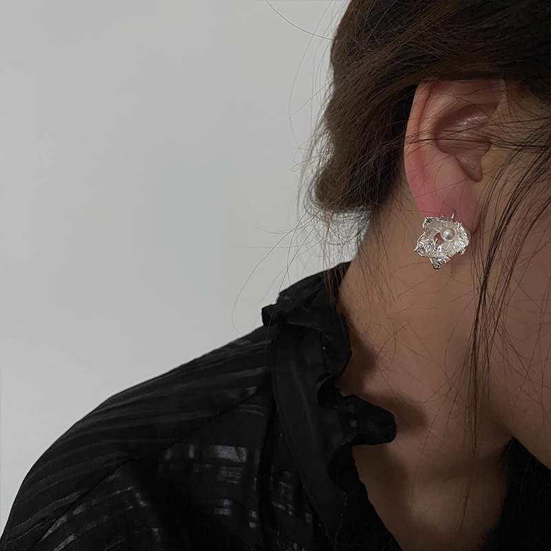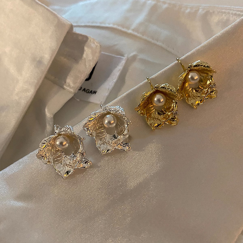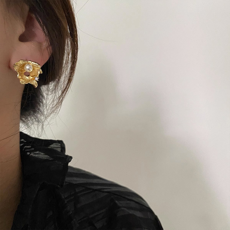 韩国小众设计感锆石金属花贝珠耳钉女银针高级感轻奢珍珠耳环