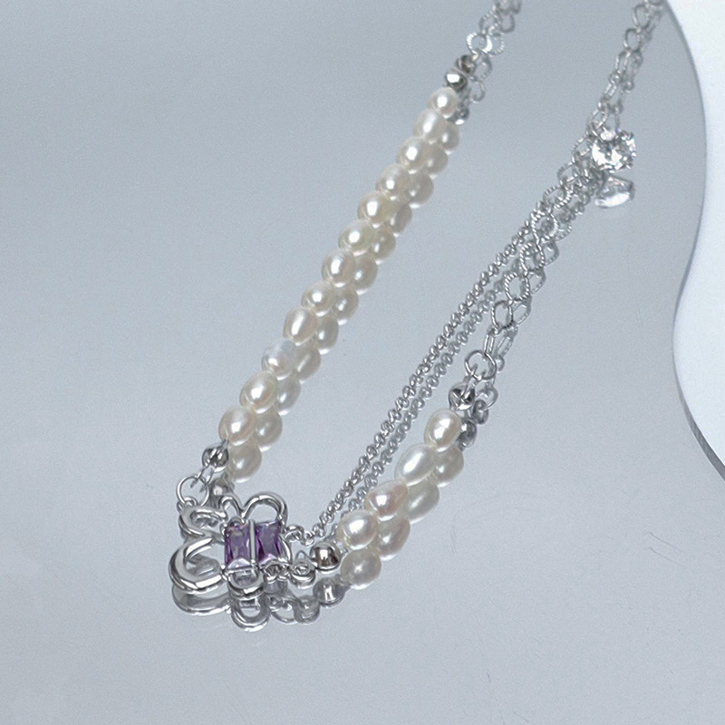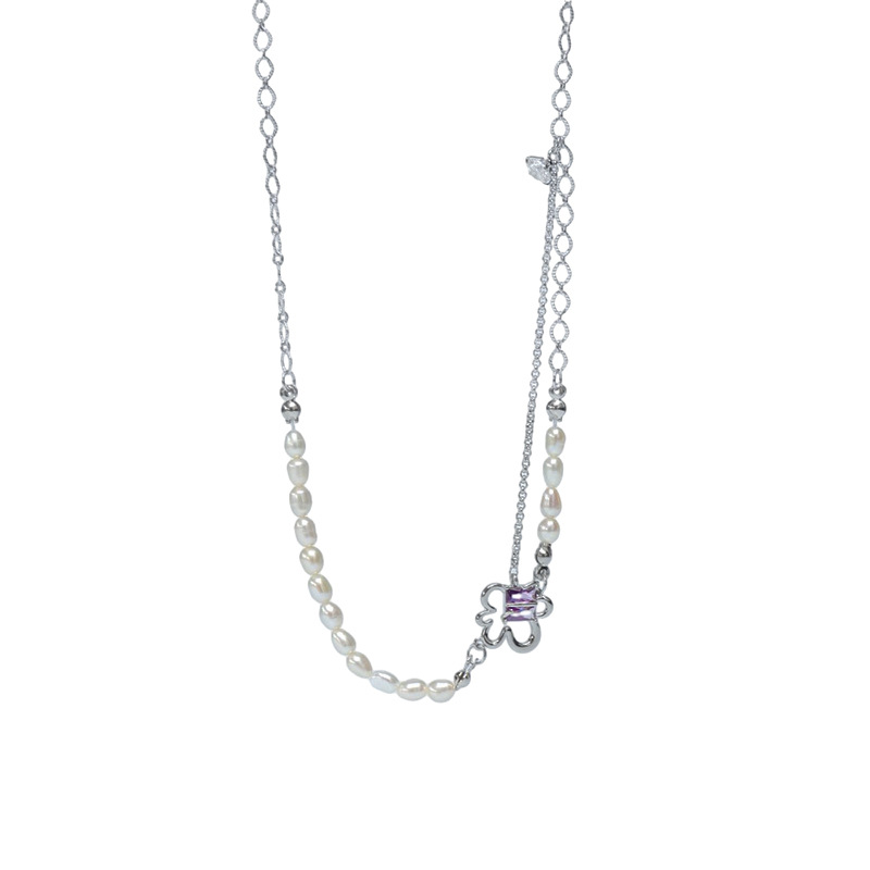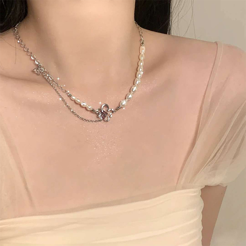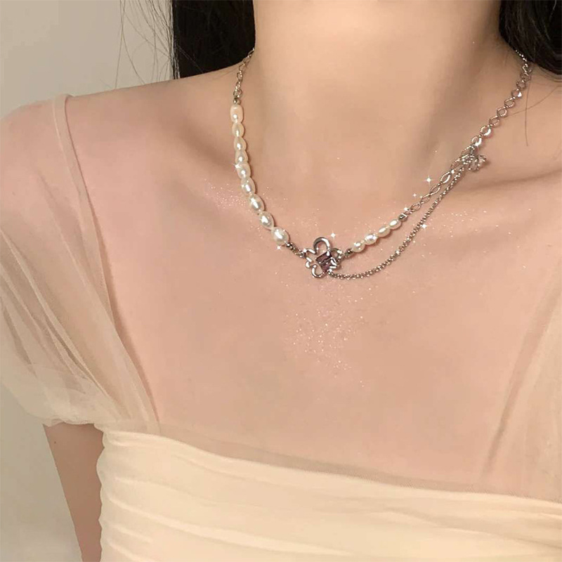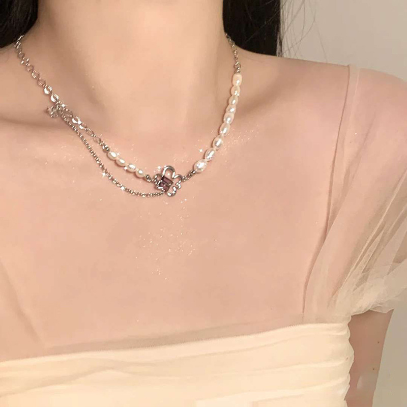 韩国新款甜美辣妹风粉色珍珠项链女ins潮拼接百搭气质百搭锁骨链