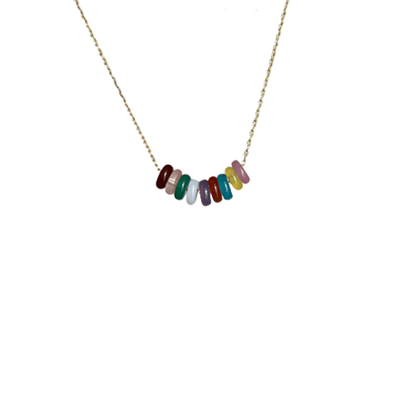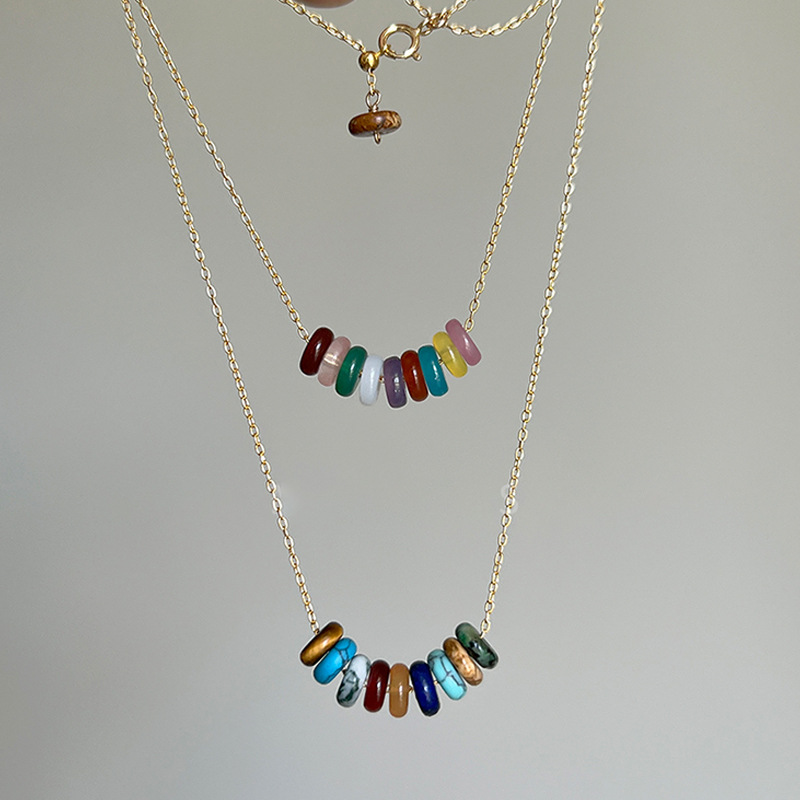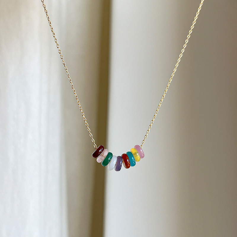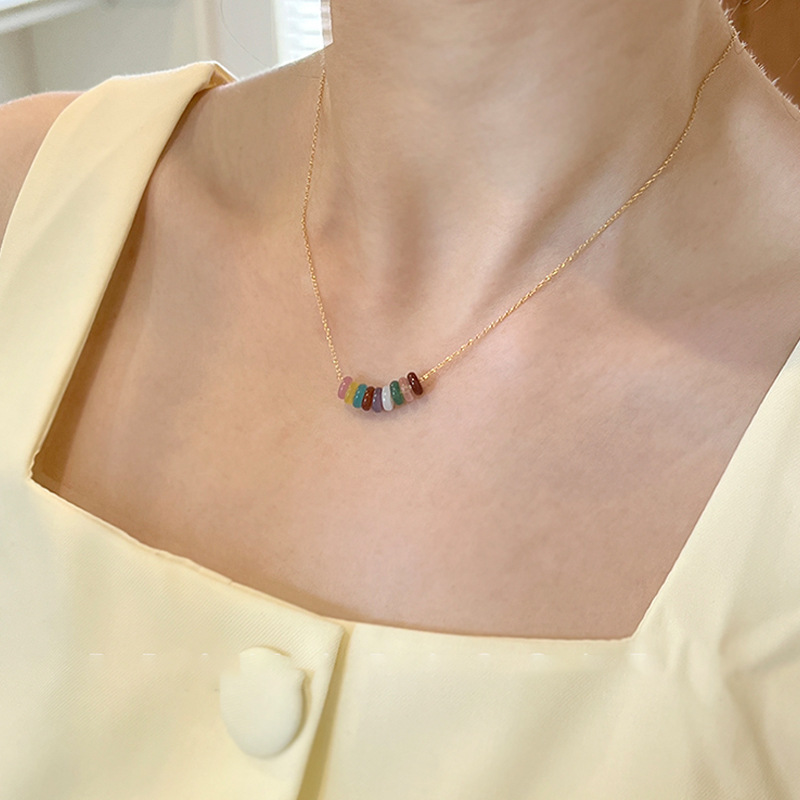 彩色锆石弧形吊坠项链轻奢小众女高级设计感锁骨链甜酷2023年新款