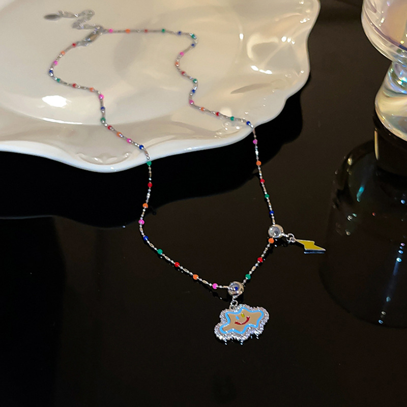 云朵笑脸项链女2023新款爆款网红高级设计感小众锁骨链颈链配饰品