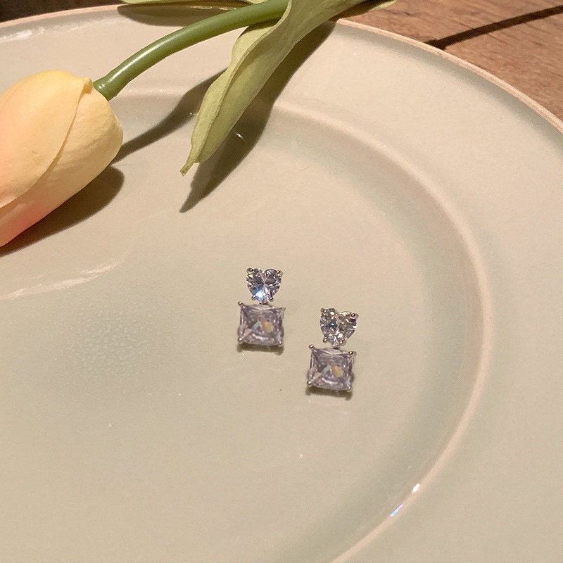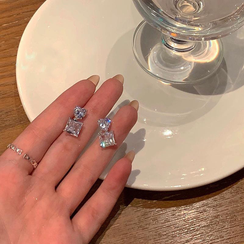 甜心碎冰~爱心锆石耳环女夏2023年新款潮耳钉小众设计感高级耳饰