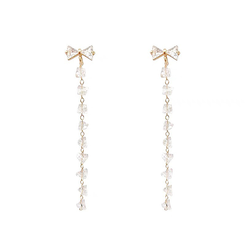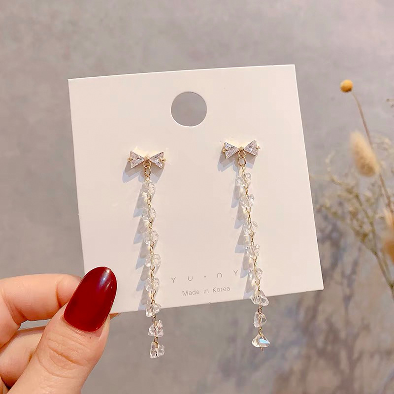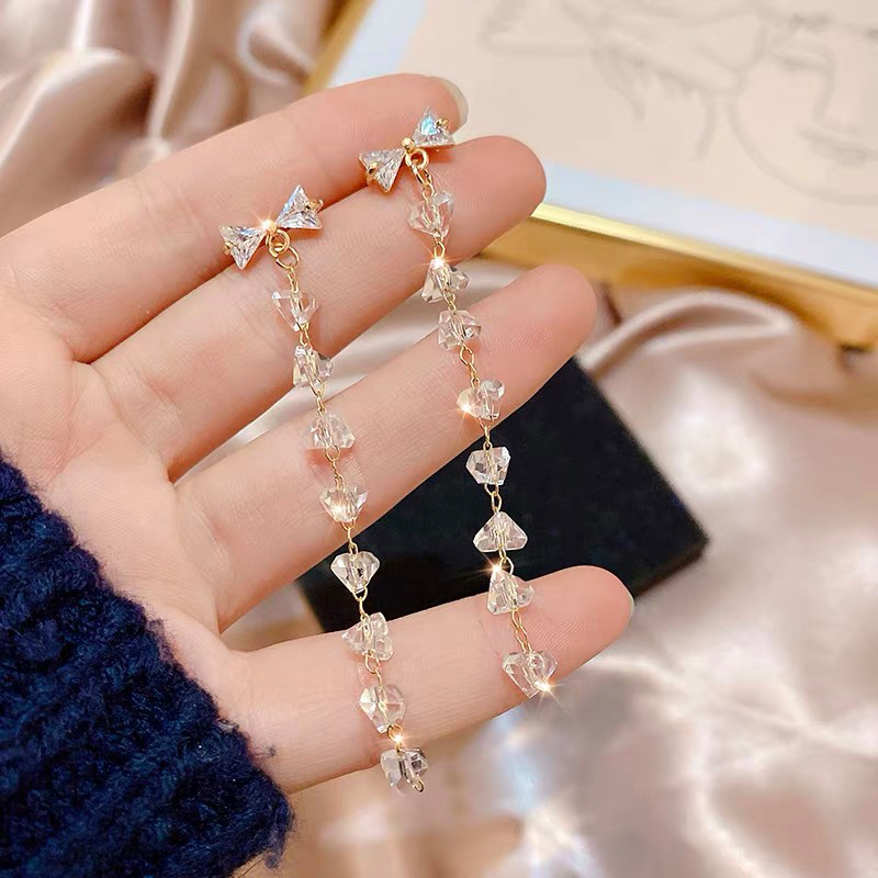 蝴蝶结长款水晶流苏耳环女夏季款2022年新款潮超仙气独特网红耳饰