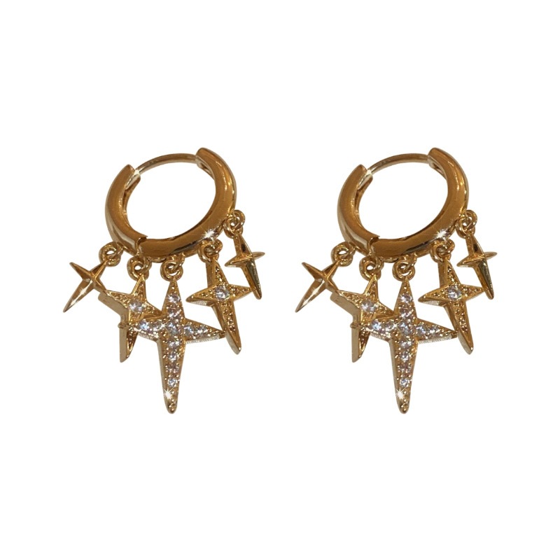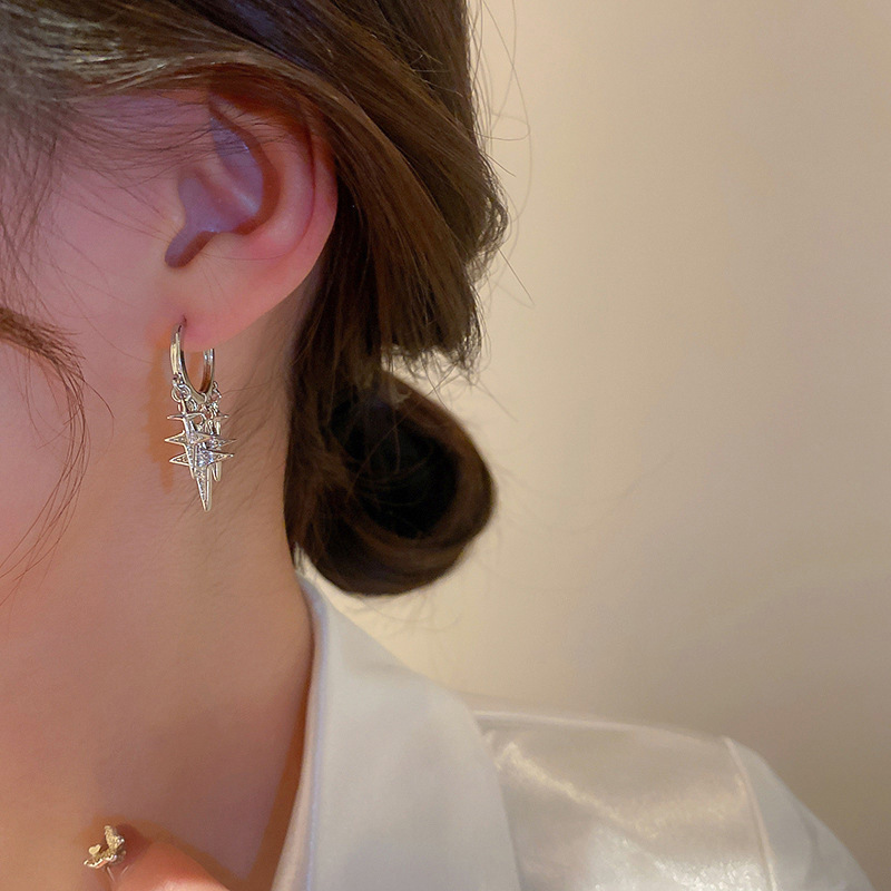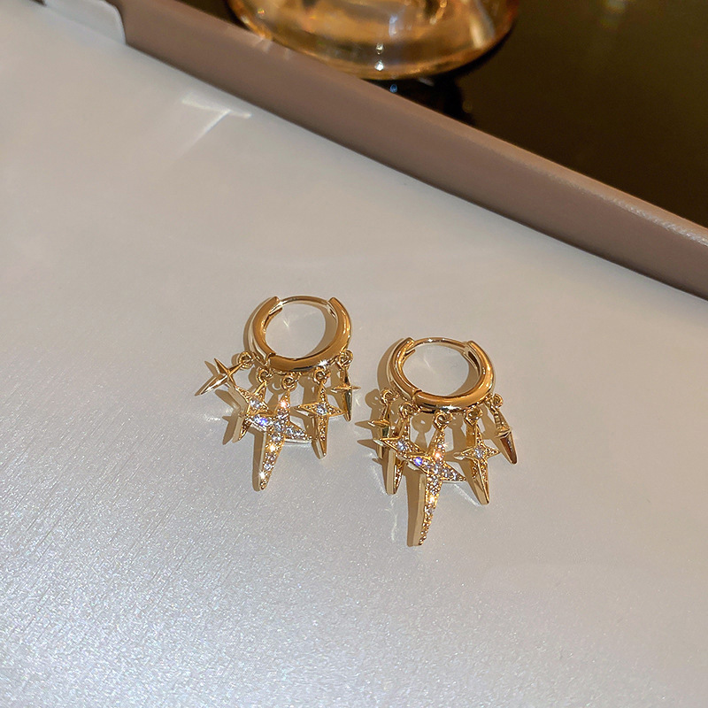 小众设计感高级流苏八芒星耳扣女金色耳环2022年新款潮耳饰耳圈