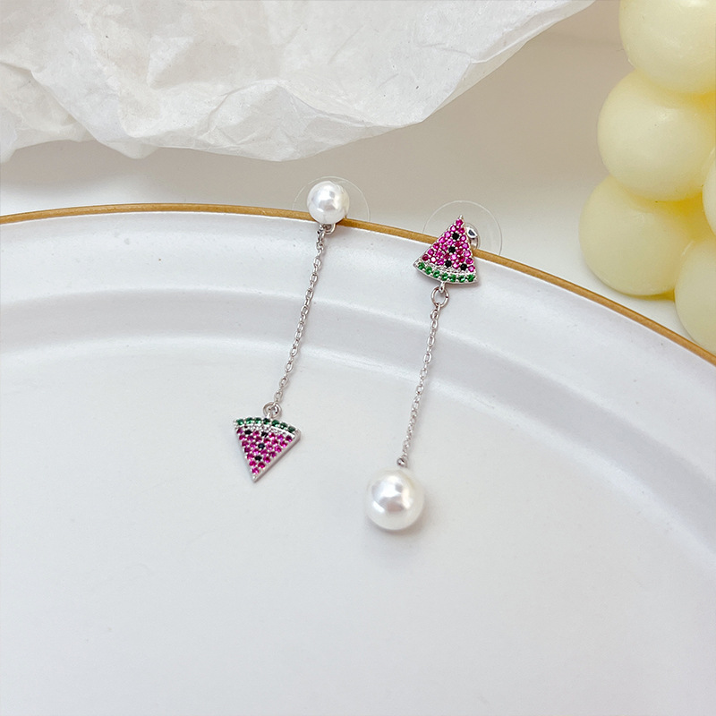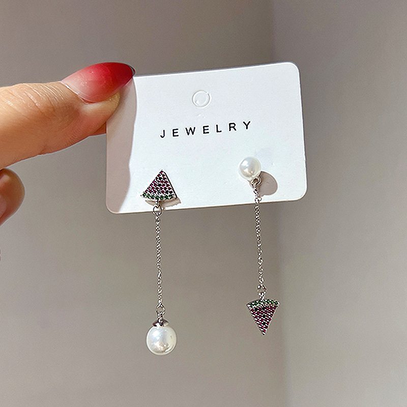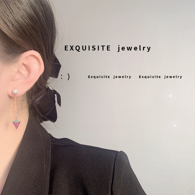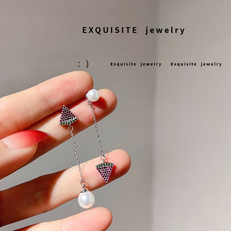 水果耳线女925银针气质长款耳环2021年新款不对称珍珠耳饰秋冬