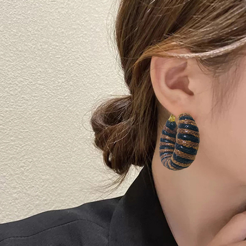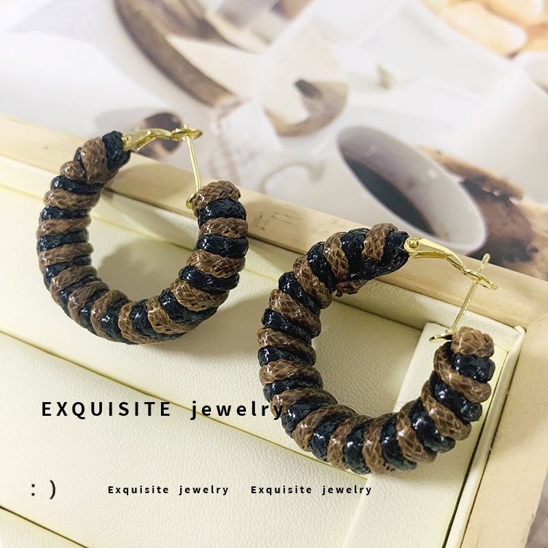 秋冬新款复古条纹耳环女轻奢小众设计感圈圈耳钉冷淡风耳饰