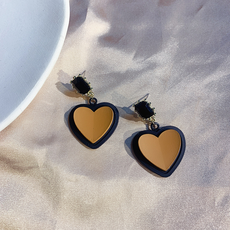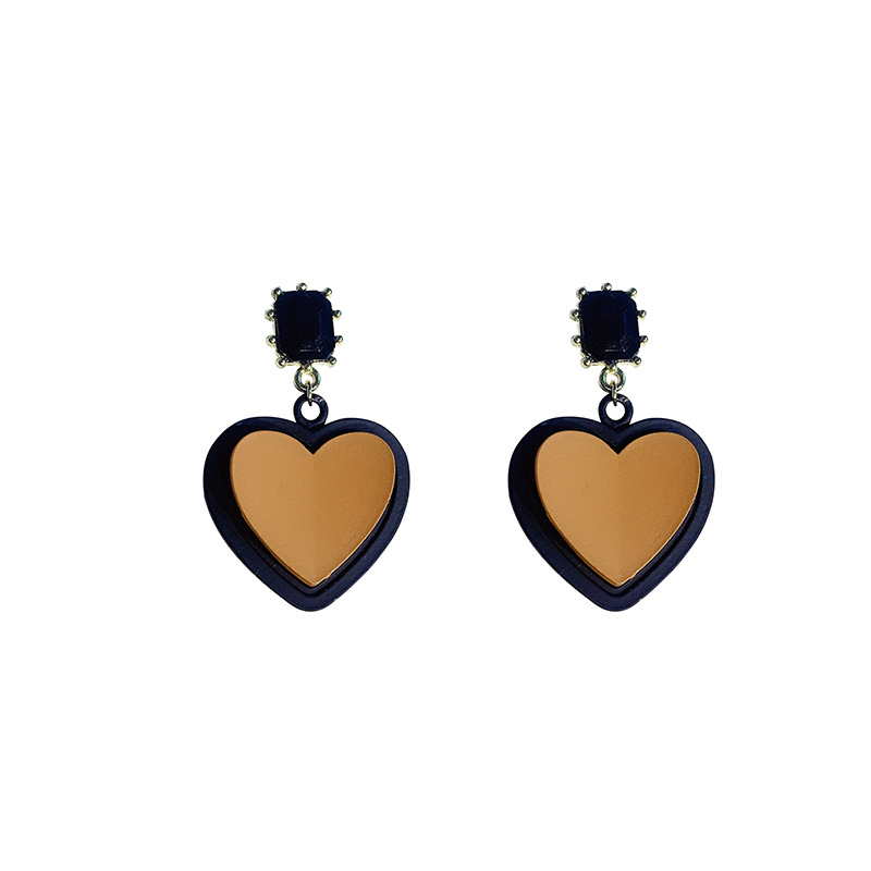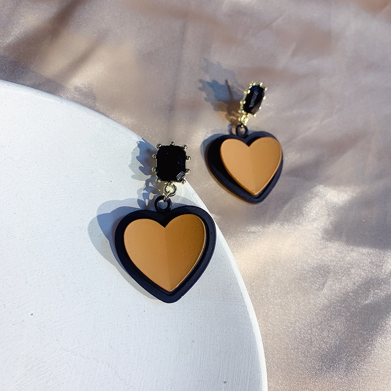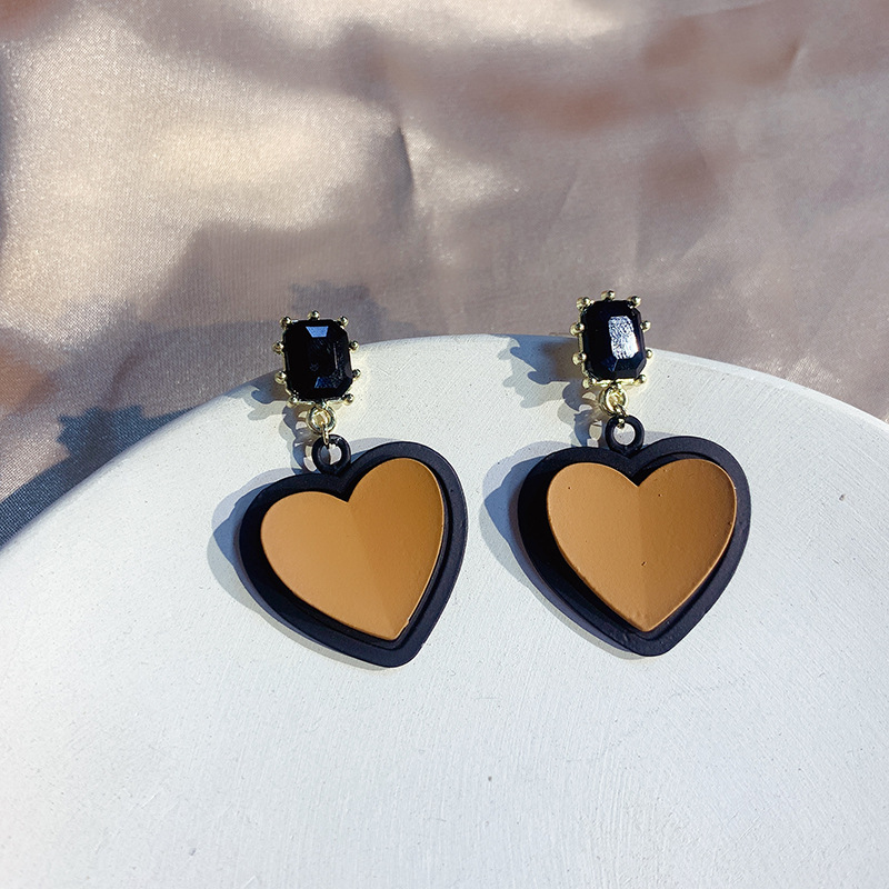 咖色系简约爱心耳环女2021年新款耳钉气质高级感925银针耳饰