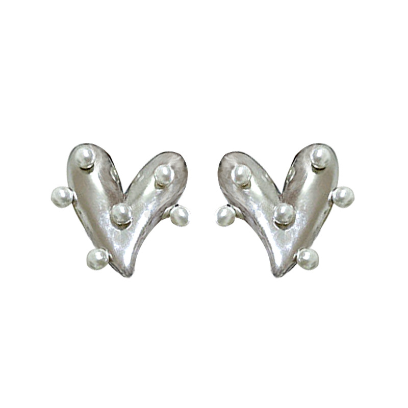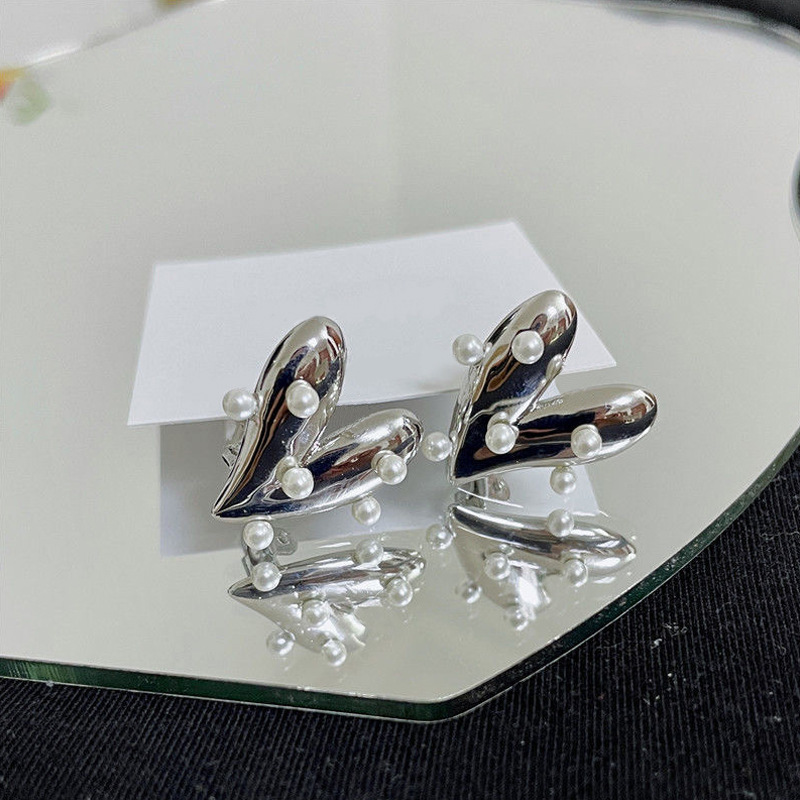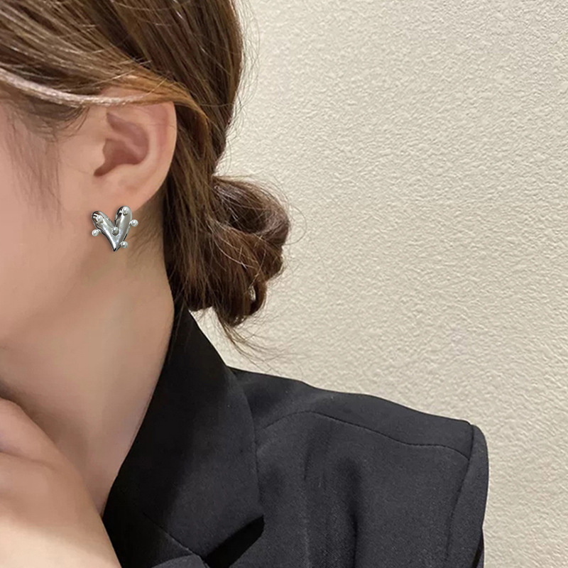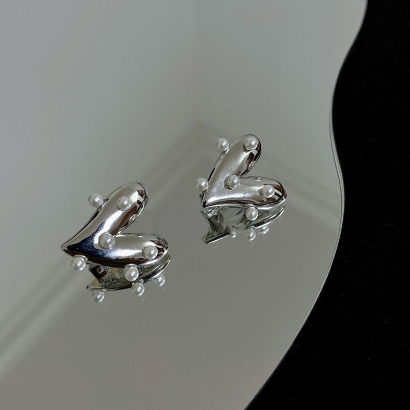 S925银针高级感金属爱心耳钉复古轻奢珍珠耳饰韩国ins冷淡风耳环