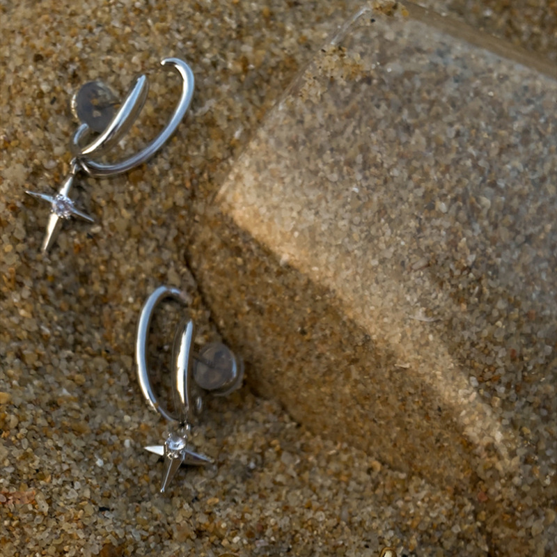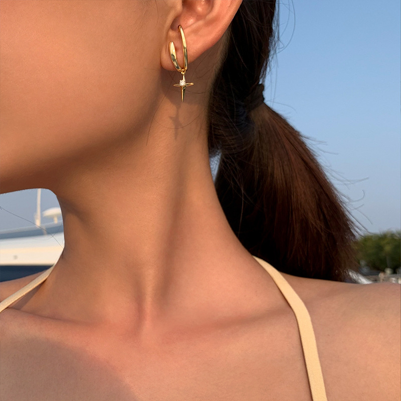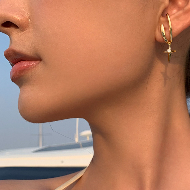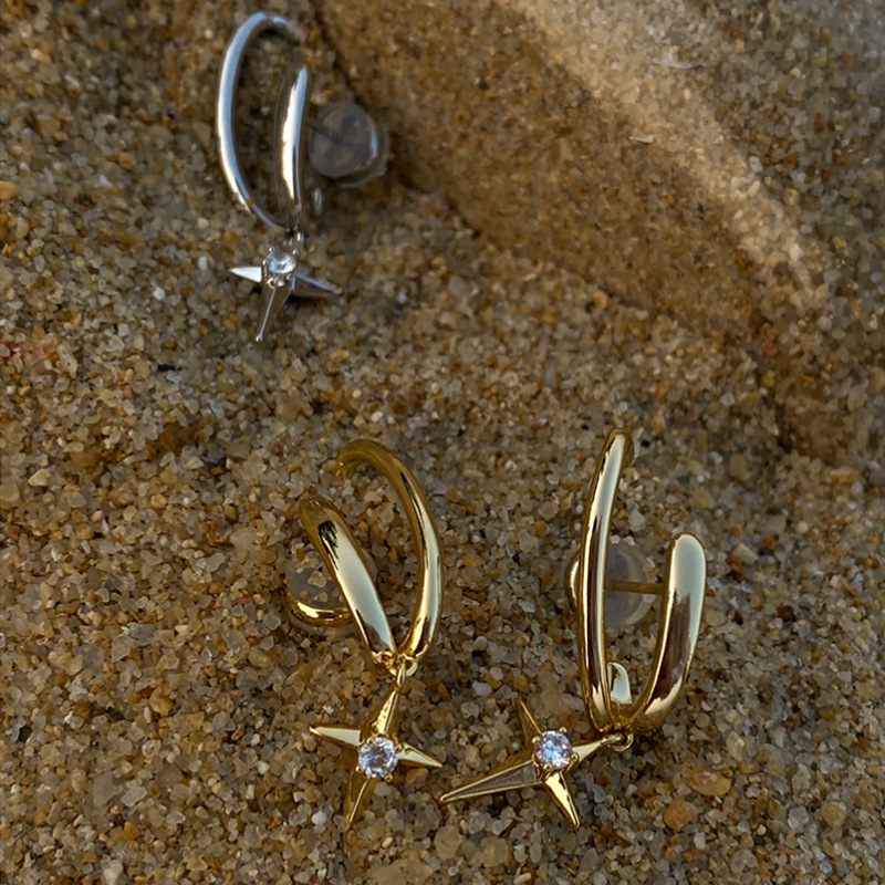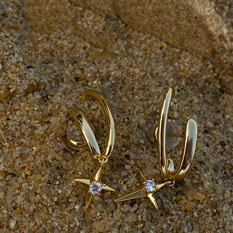 小众设计时尚镶钻星芒不规则耳钉夏日新款925银针 高级感耳环耳饰