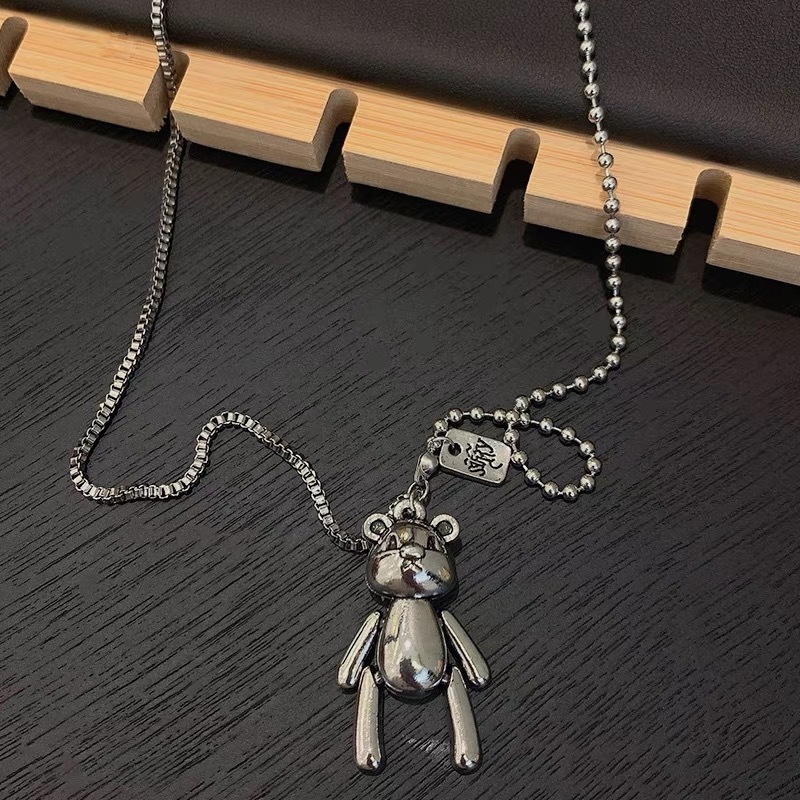 网红ins潮链条小熊项链女简约叠戴个性吊坠嘻哈配饰情侣挂件