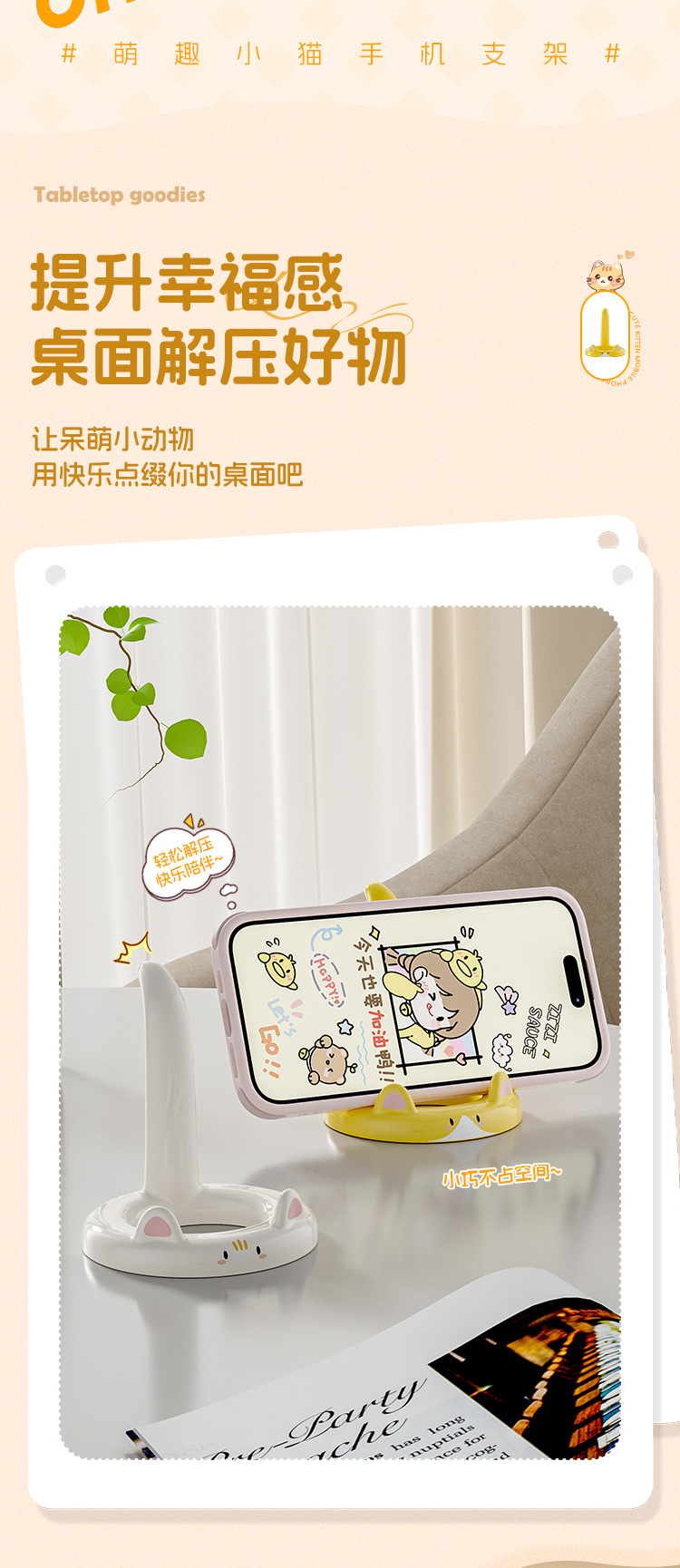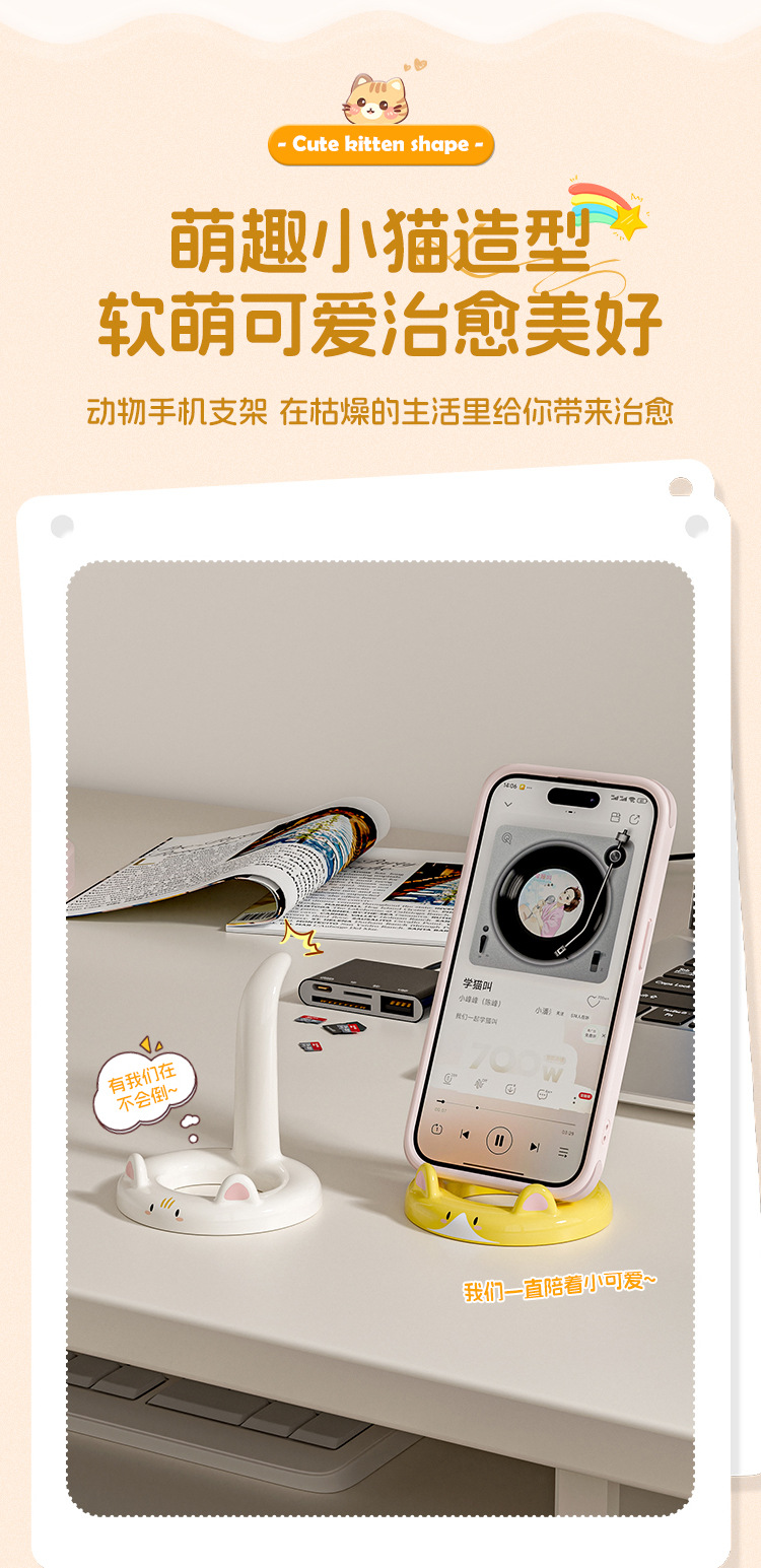 创意猫咪手机支架摆件可爱办公桌面工位装饰解压生日礼物女生解压