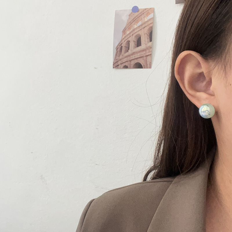 2024网红新款幻彩人鱼姬珍珠耳钉 韩版高级感气质糖果色耳环女