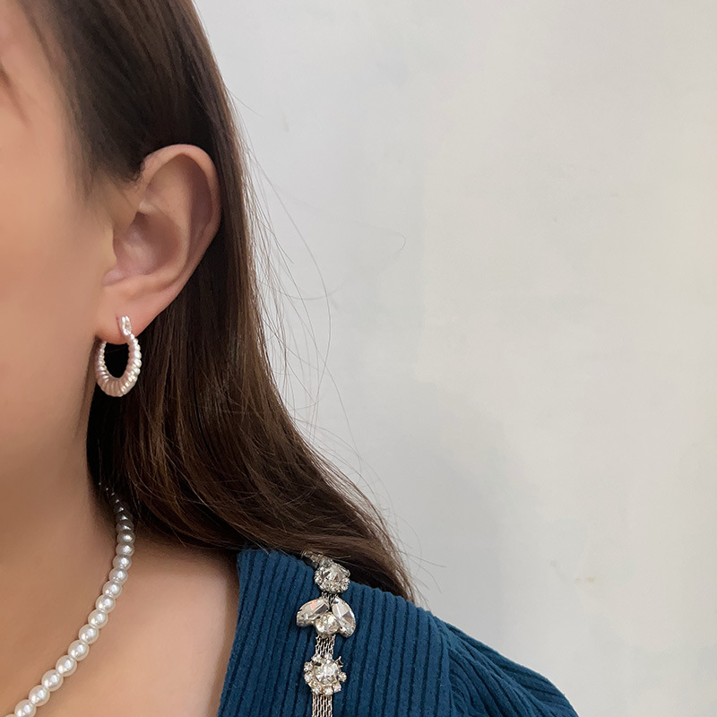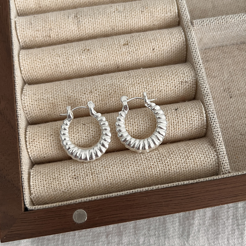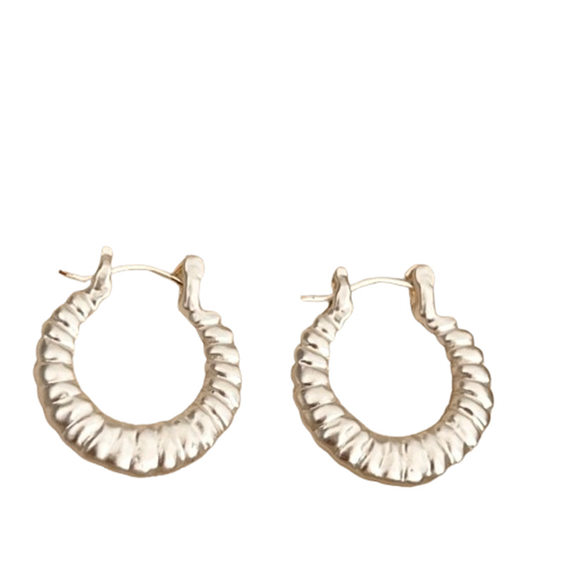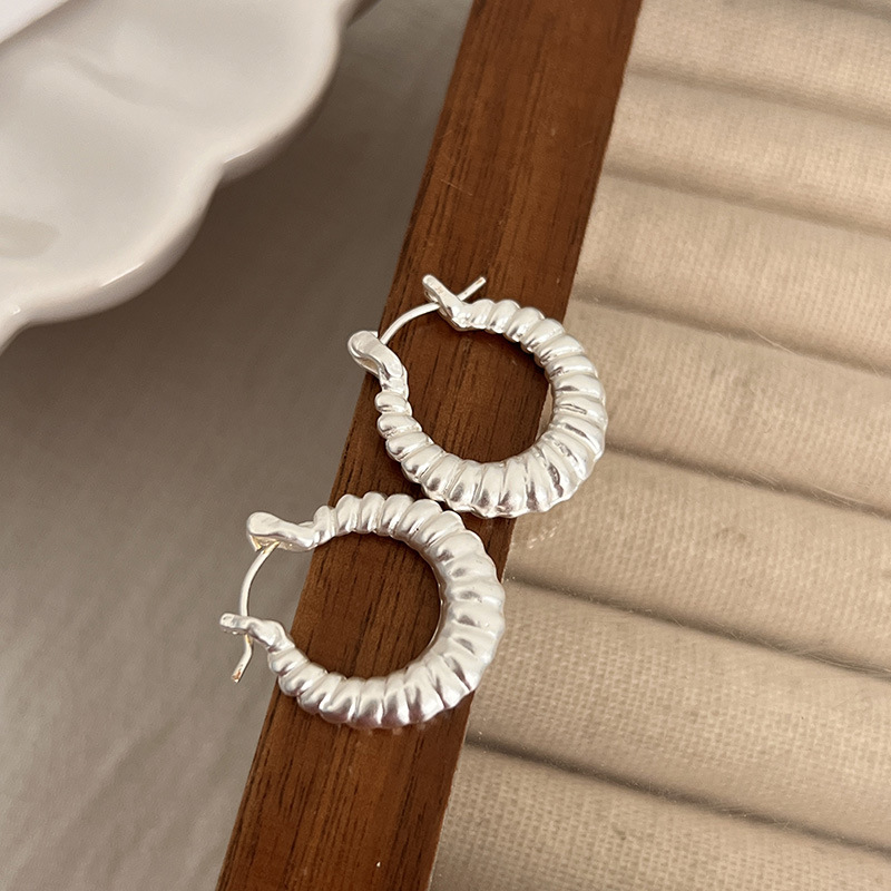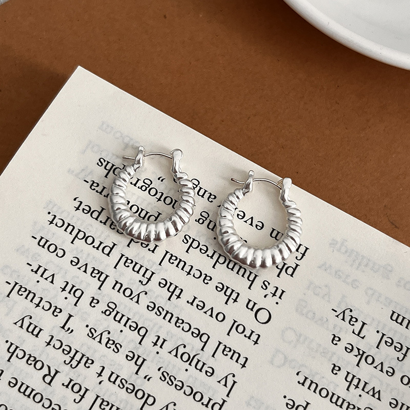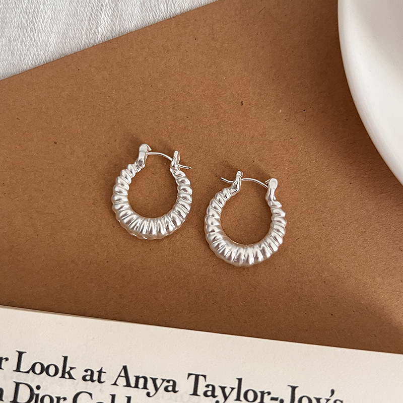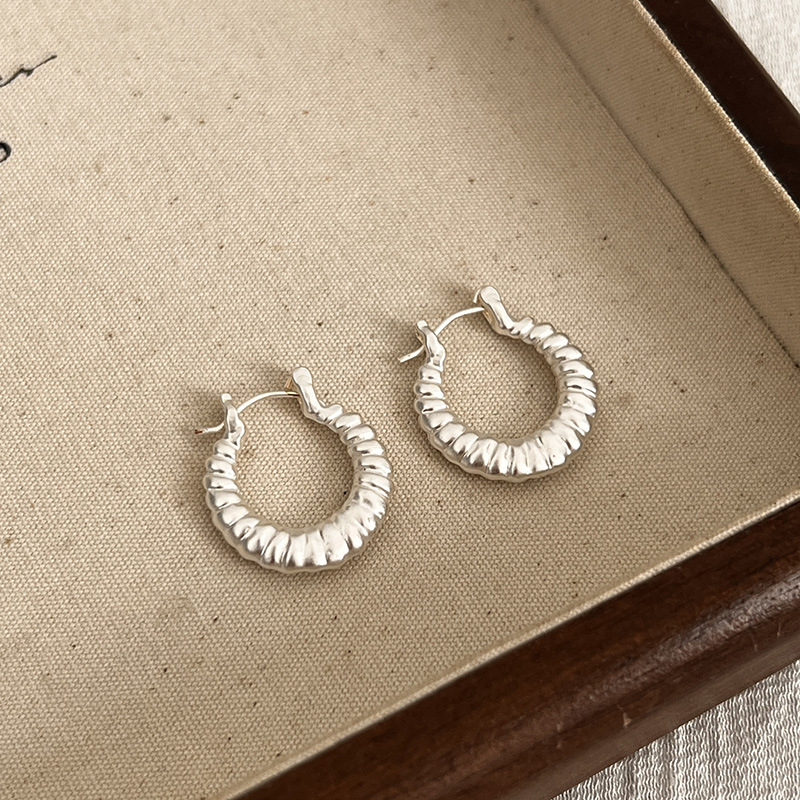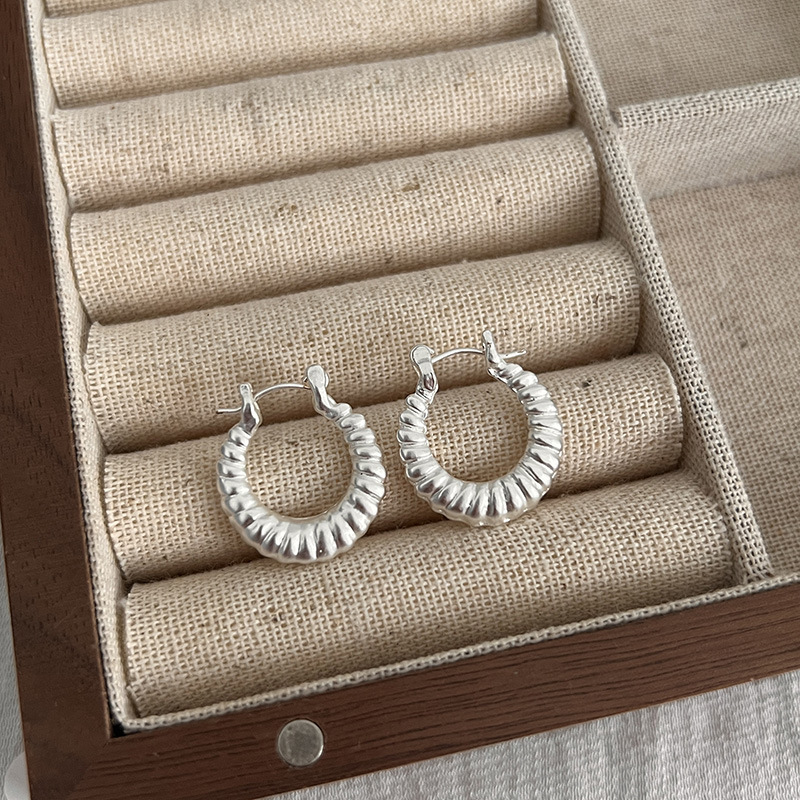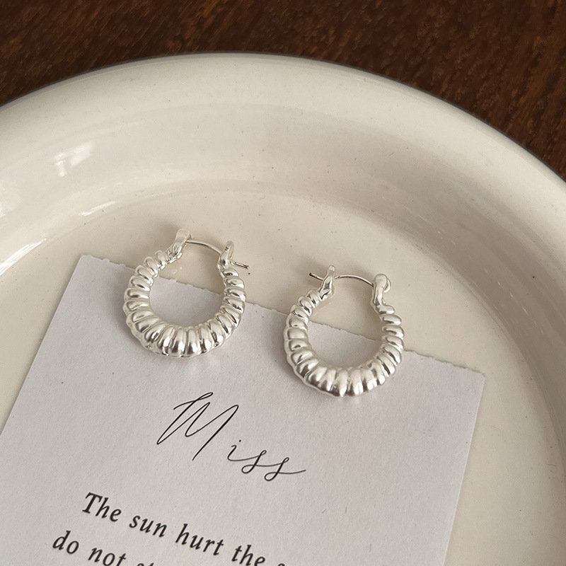 小众设计牛角包金属925纯银针耳环女2024新款爆款轻奢高级感耳圈