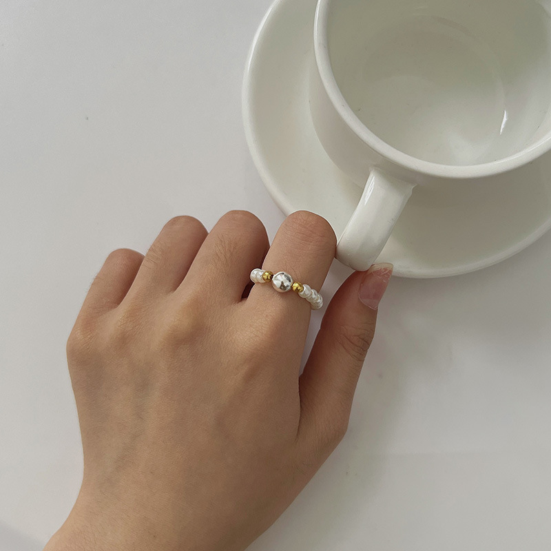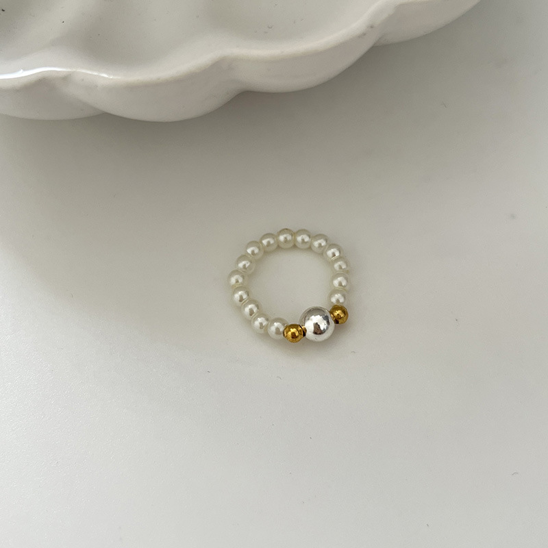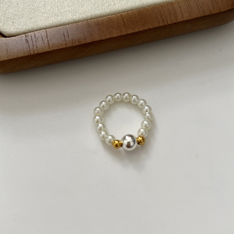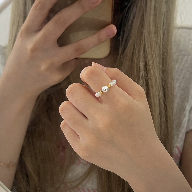 弹力时尚百搭关节指环复古巴洛克气质小众珍珠叠戴戒指女