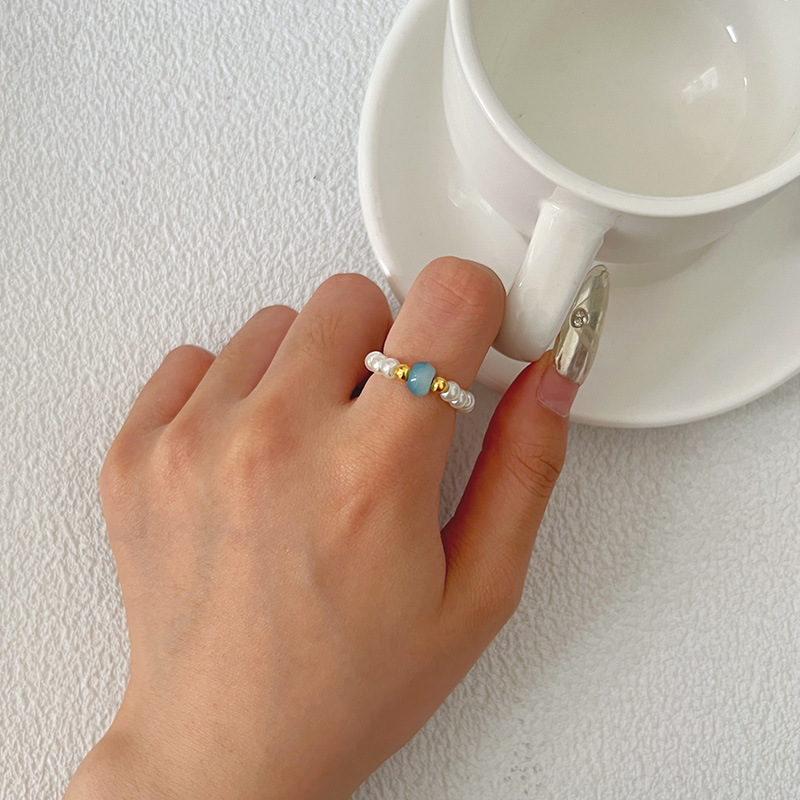 彩色水晶串珠戒指ins小众设计感高级手指戒轻奢气质百搭指环配饰