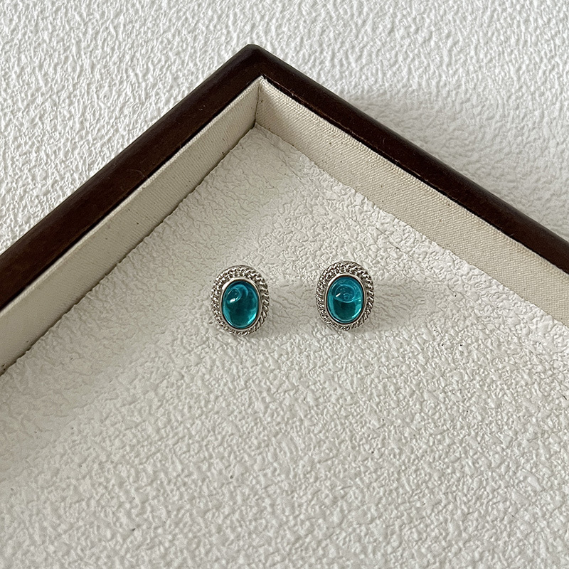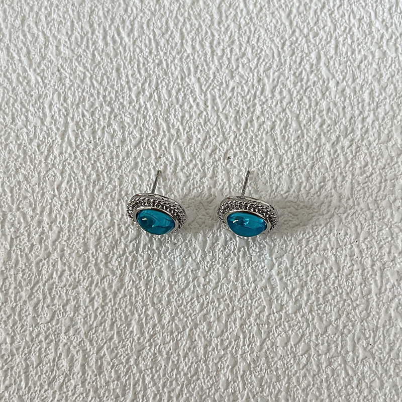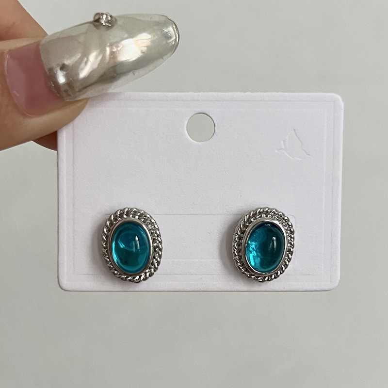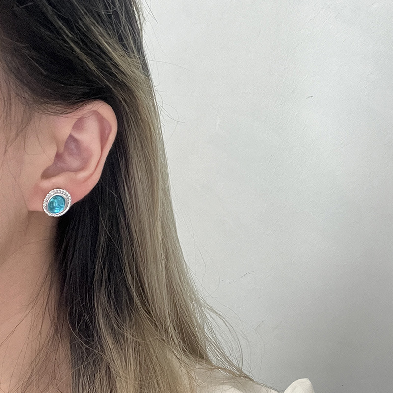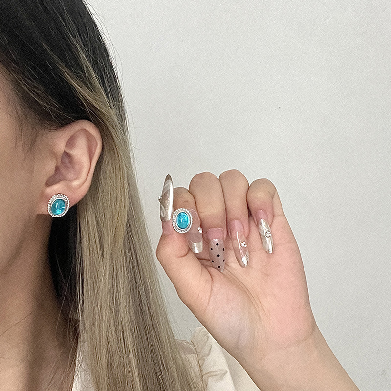 圆形镶钻环绕猫眼石耳环简约大气复古高级感耳饰气质夸张银针耳钉