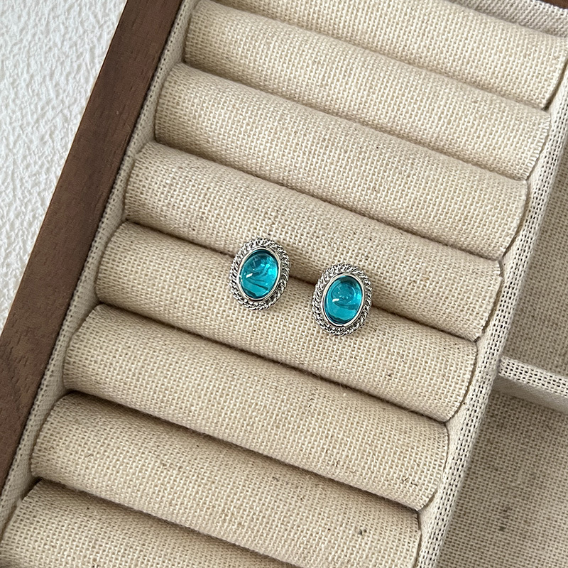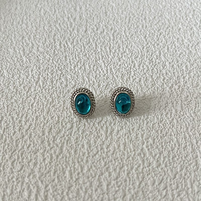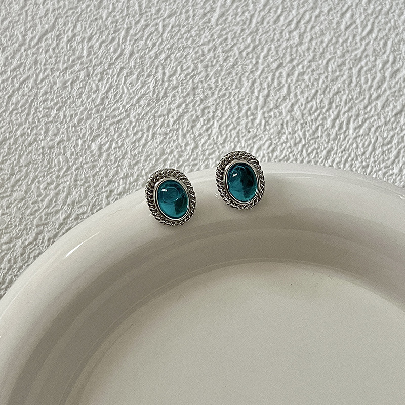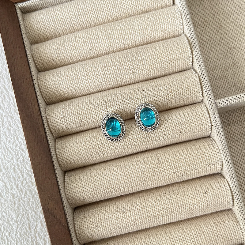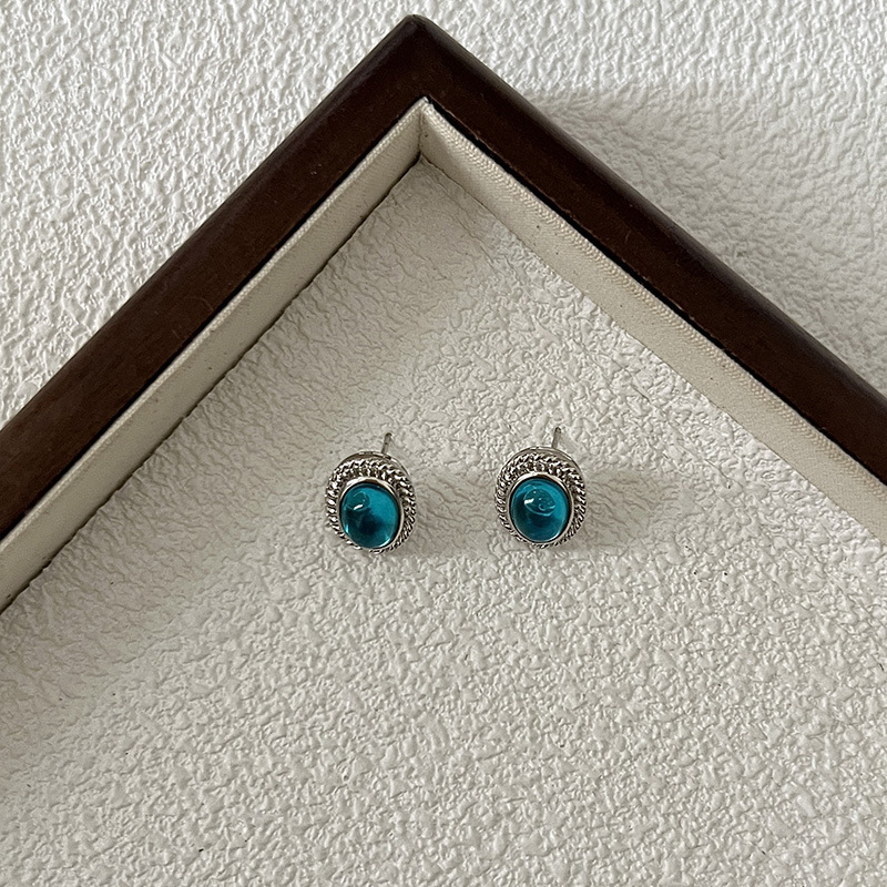 圆形镶钻环绕猫眼石耳环简约大气复古高级感耳饰气质夸张银针耳钉