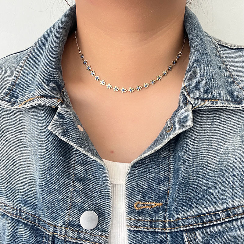 2024年新款小众设计小澜花颈链女时尚简约日韩小清新拼接小花项链