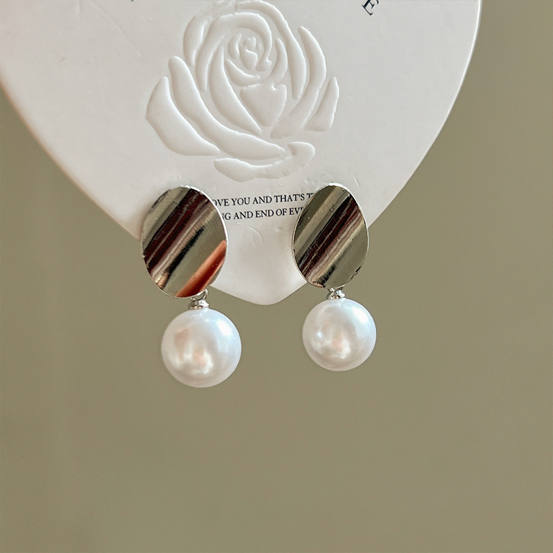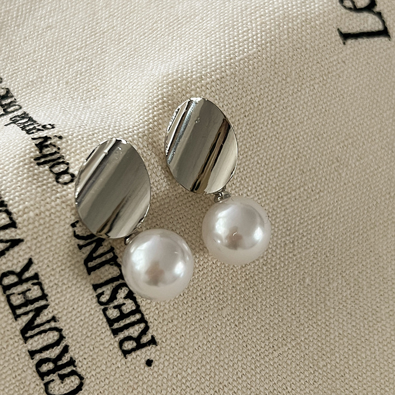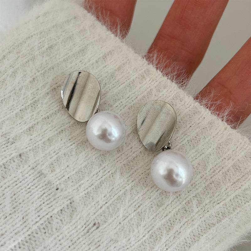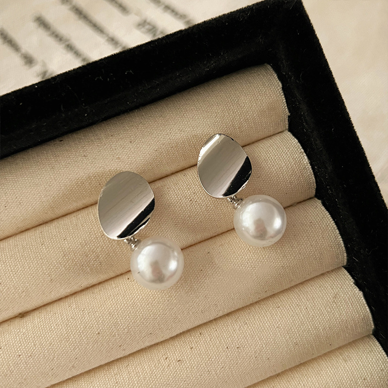 S925银针韩国简约ins风光滑亮片珍珠耳钉气质小巧耳环高级感耳饰